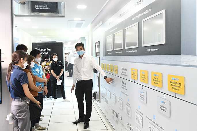 นอกจากนี้ โชว์รูมยังมีการจัดแสดงโซลูชันระบบอุตสาหกรรมอัตโนมัติสำหรับโรงงานอัจฉริยะ พร้อมด้วยโซลูชันจอแสดงผลอัจฉริยะNovoTouch และโซลูชันอุปกรณ์ชาร์จมือถือของ Innergie ที่ช่วยยกระดับประสบการณ์การทำงานและการใช้ชีวิต โซลูชันนอกอาคาร เช่น เสาไฟอัจฉริยะ และโซลูชันสถานีชาร์จรถยนต์ไฟฟ้า EV ของเดลต้า