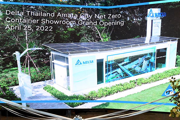 บมจ. เดลต้า อีเลคโทรนิคส์ (ประเทศไทย) เปิดตัวโชว์รูมตู้คอนเทนเนอร์ Net Zero ณ นิคมอุตสาหกรรมอมตะซิตี้ จังหวัดชลบุรี ภายใต้ธีมงานจัดแสดงพลังงานทดแทน 100% ของเดลต้า พลังงานสะอาดอัจฉริยะสำหรับยุค RE100 เดลต้าได้เชิญการนิคมอุตสาหกรรมแห่งประเทศไทย (กนอ.) สำนักงานคณะกรรมการส่งเสริมการลงทุน (บีโอไอ) บริษัท อมตะ คอร์ปอเรชั่น จำกัด (มหาชน)