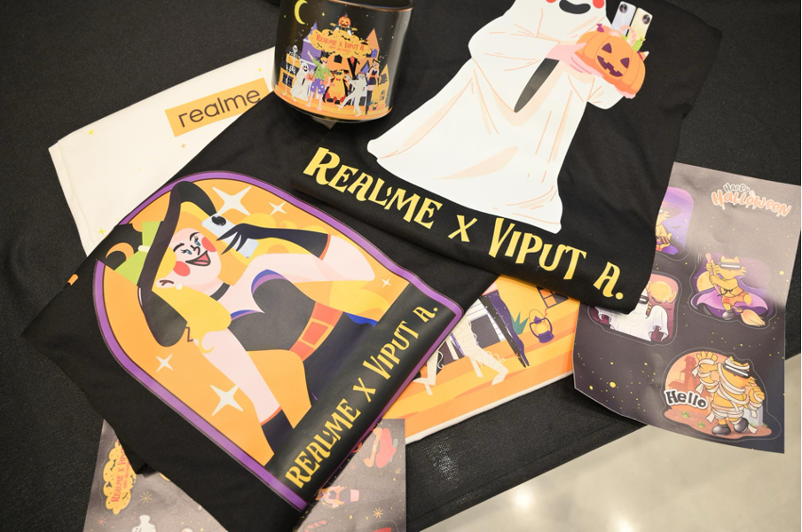 นอกจากนี้ยังมีเหล่าสื่อมวลชนและเหล่าอินฟลูเอ็นเซอร์ชื่อดังมาร่วมแสดงความยินดีอย่างหนาแน่น พร้อมทั้งเหล่าเรียลแฟนที่เพลิดเพลินไปกับเกมส์และของรางวัลต่าง ๆ มากมายภายในงาน ทั้งนี้ realme เล็งเห็นถึงความสามารถของคนรุ่นใหม่อยู่เสมอ จึงได้ร่วมมือกับนักวาดภาพประกอบชื่อดังอย่างคุณ “วิพุธ อัศวเวทวุฒิ” หรือที่รู้จักกันในนาม “Viput A.” เพื่อสร้างสรรค์ไอเท็มต้อนรับวันฮาโลวีน โดยแฟน ๆสามารถเป็นเจ้าของไอเท็มสุดเอ็กคลูซีฟนี้ได้แล้ววันนี้ที่ realme Experience Store 3.0 แห่งนี้เช่นกัน