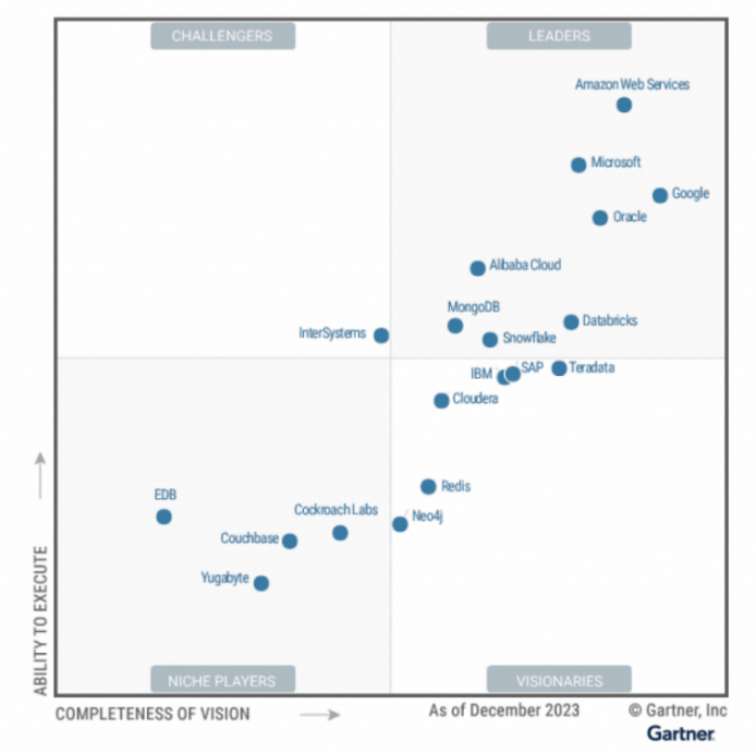 การ์ทเนอร์ ซึ่งเป็นบริษัทที่ให้ข้อมูลเชิงลึกที่นำไปใช้ประโยชน์ได้จริงแก่ผู้บริหารและทีมงานของผู้บริหาร ได้ประเมินความสามารถของผู้ให้บริการคลาวด์ (คลาวด์เวนเดอร์) ทั่วโลก โดยพิจารณาจากความสามารถในการนำไปใช้ได้จริง และความสมบูรณ์ของวิสัยทัศน์ด้านระบบจัดการดาต้าเบสบนคลาวด์ (DBMS) ทั้งนี้การ์ทเนอร์ได้ระบุไว้ว่า “คลาวด์เวนเดอร์ที่อยู่ในกลุ่มผู้นำสามารถทำตามวิสัยทัศน์ในปัจจุบันได้ดี และอยู่ในสถานะที่รองรับอนาคตได้ดี”