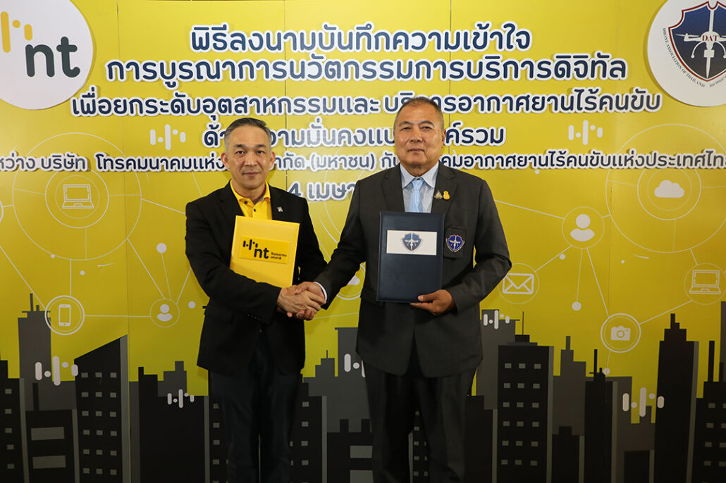 NT และ สมาคมอากาศยานไร้คนขับแห่งประเทศไทย จะเดินหน้าศึกษาความเป็นไปได้ในการใช้เทคโนโลยีดิจิทัล เพื่อสนับสนุนอุตสาหกรรมและบริการอากาศยานไร้คนขับ ให้พร้อมรองรับการเติบโตของอุตสาหกรรมและบริการอากาศยานไร้คนขับแบบองค์รวมที่จะเกิดขึ้นในอนาคต โดยเบื้องต้นจะร่วมกันศึกษาและพัฒนานวัตกรรมด้านการบริหารจัดการห้วงอากาศและภาคพื้น (Unmanned Aircraft System Traffic Management : UTM) ด้านการผลิตชิ้นส่วน (Manufacturing) ซอฟต์แวร์และแอปพลิเคชัน (SW and Application Development)