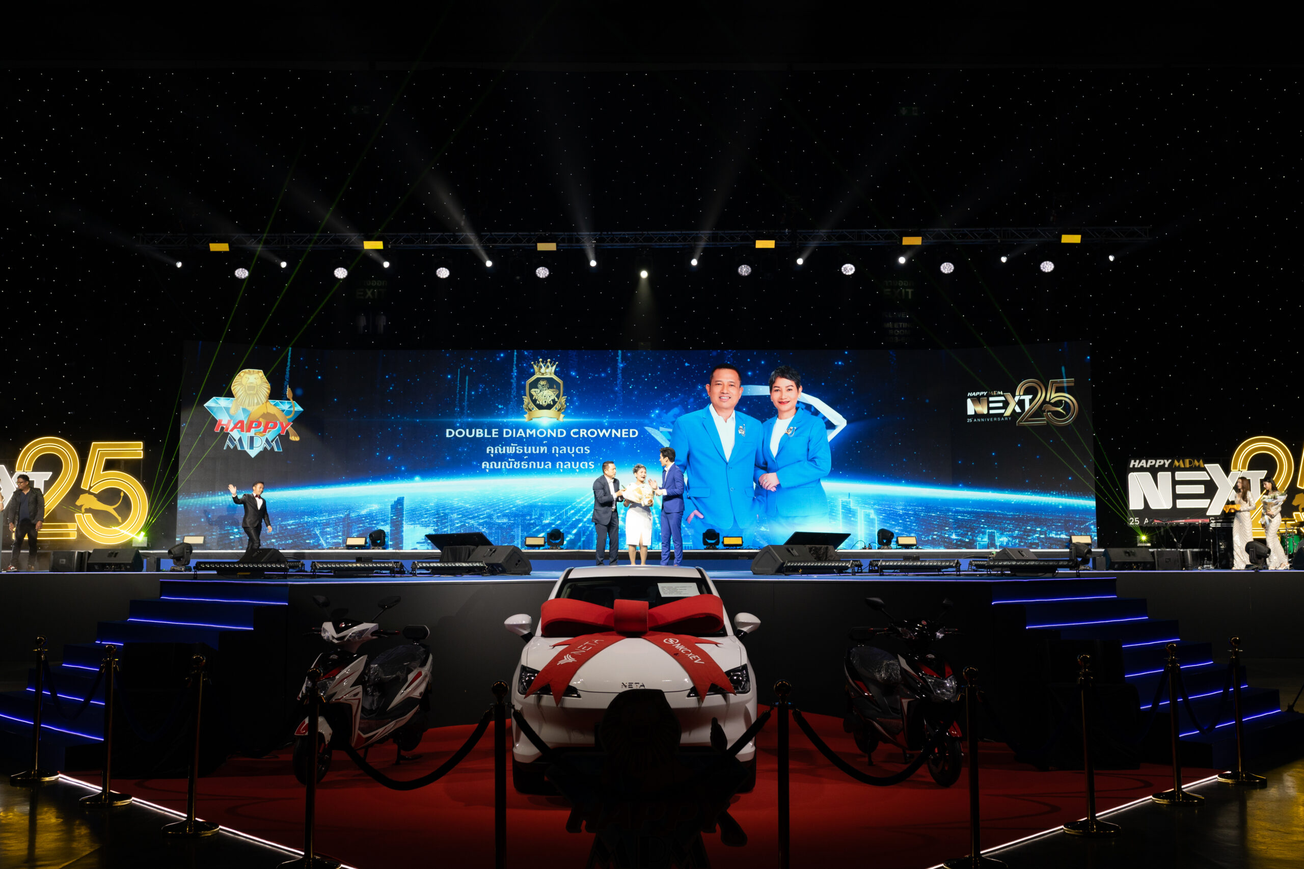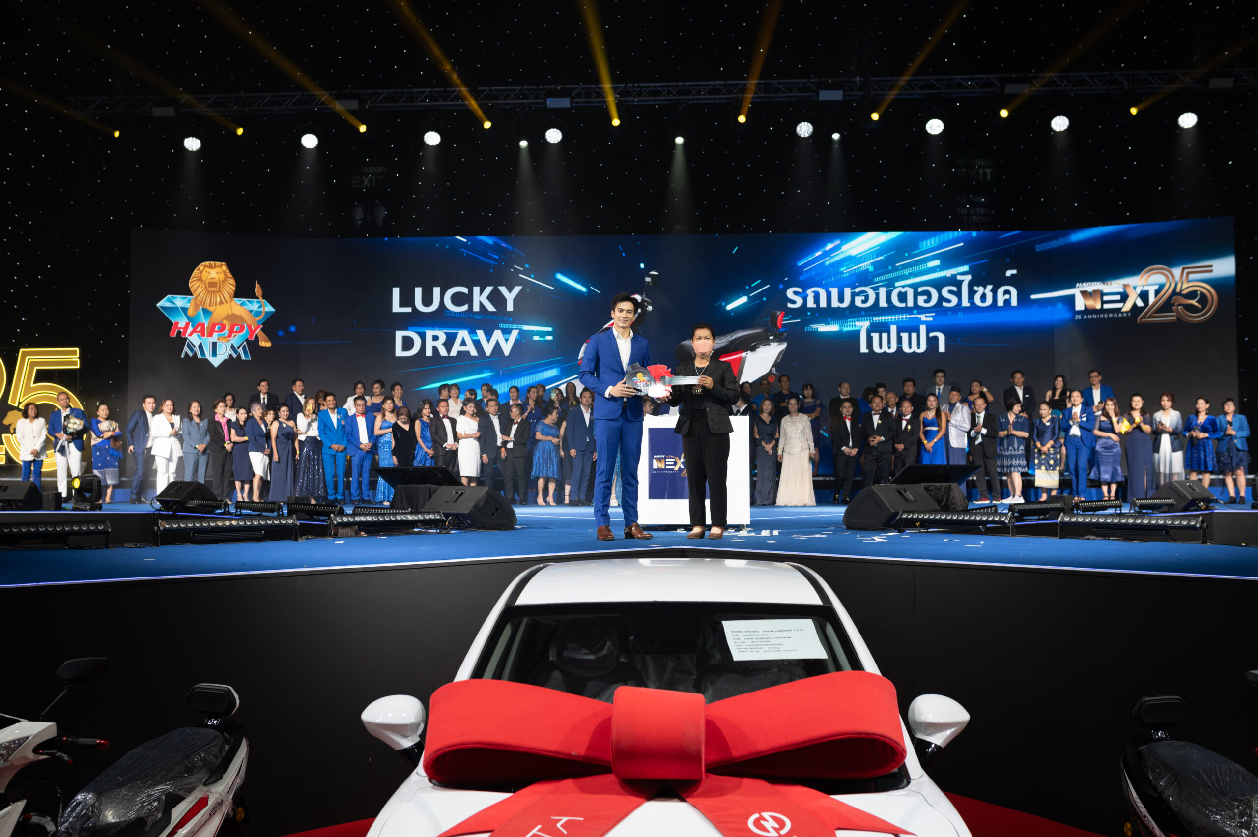 สำหรับการเฉลิมฉลองครบรอบ 25 ปี บริษัท แฮ็ปปี้ เอ็มพีเอ็ม จำกัด ที่จัดขึ้นเมื่อวันที่ 16 มิถุนายน 2567 ณ อิมแพค เมืองทองธานี Exhibition Hall 6 จัดขึ้นอย่างยิ่งใหญ่ โดยมีพาร์ตเนอร์นักธุรกิจทั่วอาเซียนเดินทางมาร่วมงานมากกว่า 7,000 คน ไฮไลต์ภายในงาน นอกจากจะมีผู้นำนักธุรกิจทั้งในและต่างประเทศขึ้นรับตำแหน่งนับร้อยคน การเปิดตัวผลิตภัณฑ์ใหม่ ยังมีโปรโมชั่นพิเศษ และการลุ้นรางวัลรถยนต์ไฟฟ้า รถมอเตอร์ไซค์ไฟฟ้า ทองคำ เครื่องใช้ไฟฟ้า และรางวัลอื่น ๆ อีกมากมาย ปิดท้ายด้วยคอนเสิร์ตจาก Super Star เจ้าพ่อเพลงแดนซ์ ”เจ-เจตริน“ บรรยากาศภายในงานจึงเต็มไปด้วยความยินดี อิ่มเอมใจ และสนุกสนานตลอดงาน