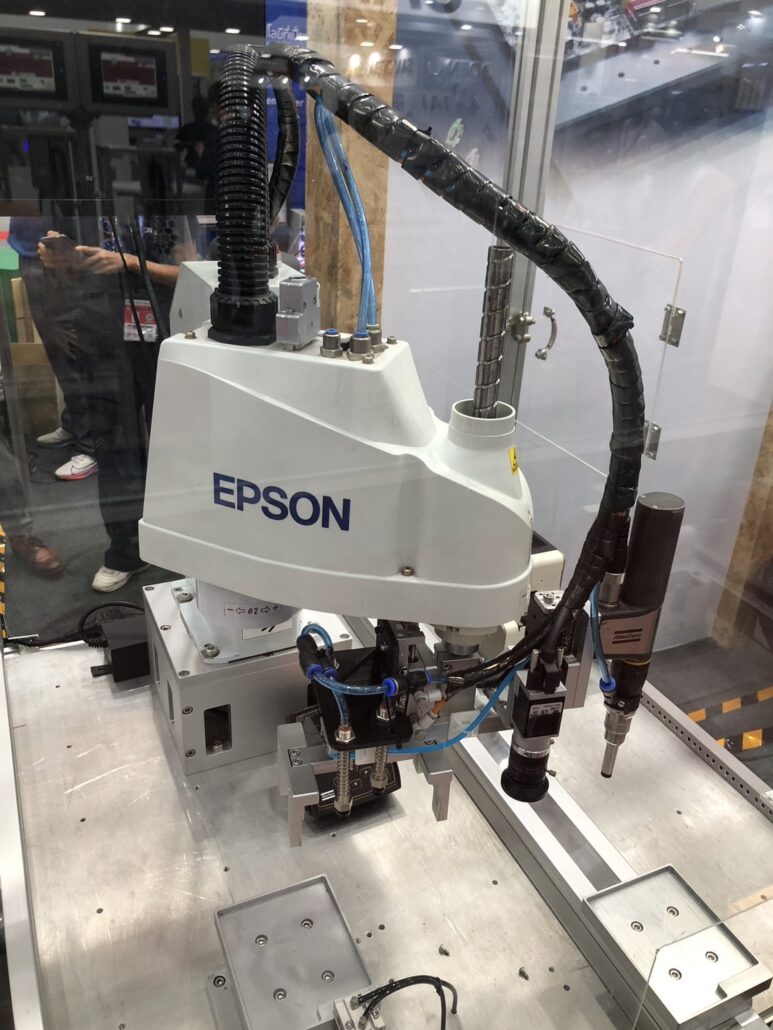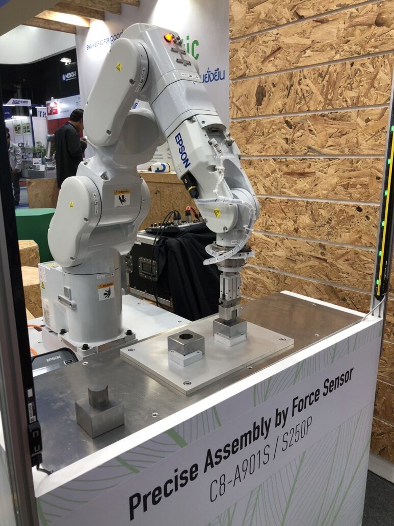 Epson GX8 มีความรวดเร็วแม่นยำในการทำงาน โดยเฉพาะการทำงานในพื้นที่จำกัดและสภาพแวดล้อมที่หลาก หลาย เพื่อกลุ่มอุตสาหกรรมธุรกิจยานยนต์ อุปกรณ์อิเล็กทรอนิคส์ เครื่องใช้ไฟฟ้า และฮาร์ดไดร์ฟ เป็นต้น นอกจากนี้ภายในงานยังได้จัดแสดงอุปกรณ์เชื่อมต่อที่ช่วยเพิ่มประสิทธิภาพในการทำงานของแขนกลหุ่นยนต์ อาทิ Epson force-sensor S250P เซ็นเซอร์วัดแรงกด S250 Series ที่เมื่อติดตั้งเข้ากับหุ่นยนต์แขนกล จะทำให้สัมผัสได้ถึงแรงบิดหรือแรงกดที่เบาที่สุดเพียง 0.1 นิวตัน ใน 6 ทิศทาง ทำให้หุ่นยนต์สามารถทำงานที่ซับซ้อนได้ดียิ่งขึ้น และ Epson Spectroscopic Vision SV-700S-CVI กล้องสเปกโทรสโกปีที่ใช้ความยาวคลื่นสำหรับแยกแยะสีต่างๆ อย่างละเอียด