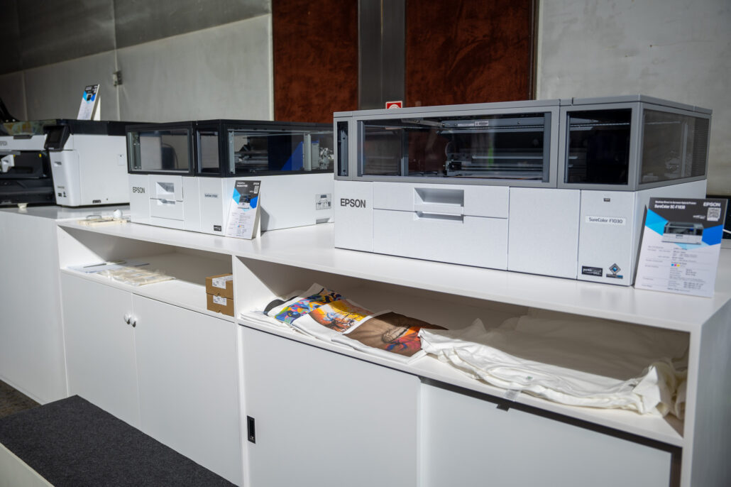 ในส่วนเครื่องพิมพ์ผ้าโดยตรง (Direct-to-garment printer) เอปสันได้นำเครื่องพิมพ์รุ่นล่าสุดมาจัดแสดง คือ Epson SureColor SC-F1030 ซึ่งเป็นเครื่องพิมพ์ผ้าขนาดเล็กที่สุดของเอปสัน มาพร้อมฟีเจอร์อินเตอร์แอคทีฟ เหมาะกับการพิมพ์ผ้าได้โดยตรงสำหรับของชิ้นใหญ่ และสามารถพิมพ์ลงแผ่นฟิล์มโดยตรง ซึ่งเหมาะกับพิมพ์โลโก้ขนาดเล็ก และ Epson SureColor SC-F2230 ด้วยเทคโนโลยีหัวพิมพ์ PrecisionCore MicroTFP แบบใหม่ของเอปสัน ช่วยให้พิมพ์งานได้เร็วขึ้นถึง 135% ทั้งสองรุ่นมีความยืดหยุ่นในการสร้างสรรค์งาน สรรค์งานให้ลูกค้าพร้อมเติมเต็มความต้องการของลูกค้ามากยิ่งขึ้น