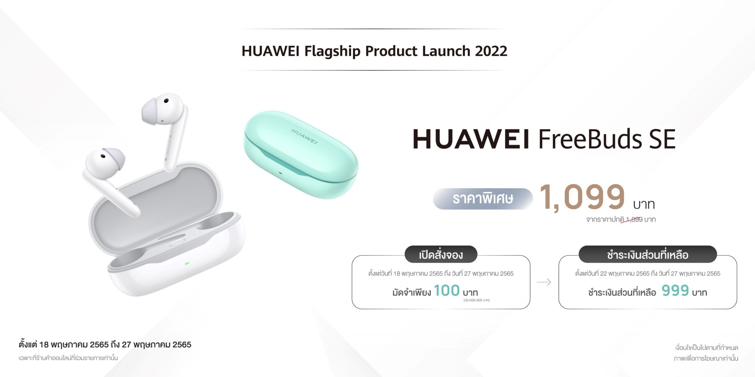 มาพร้อมซิลิโคนครอบหูให้เลือกถึง 3 ขนาด เพื่อการใช้งานที่เหมาะกับสรีระของหูผู้ใช้งานแต่ละคน เอนจอยไปกับคุณภาพเสียงทรงพลังด้วยเทคโนโลยีเหนือชั้นที่มีทั้งไดนามิกไดรเวอร์ 10 มม. และไดอะแฟรมโพลีเมอร์ที่มีความไวสูงในตัว และเทคโนโลยีบีมฟอร์มมิ่งแบบไมค์คู่ที่ให้เสียงคมชัดระหว่างการโทร มาพร้อม 2 สี คือสีฟ้าและสีขาว และแบตเตอรี่ใช้ได้ยาวนานตลอด 24 ชั่วโมง[9] วางจำหน่ายในประเทศไทยที่ 1,899 บาท โดยจำหน่ายเฉพาะช่องทางออนไลน์ HUAWEI Store และร้านค้าอย่างเป็นทางการของหัวเว่ยบน Shopee, Lazada และ ThisShop เท่านั้น โดยสามารถพรีออเดอร์ได้ตั้งแต่ 18พฤษภาคม 2565 ถึง 27 พฤษภาคม 2565 พร้อมโปรโมชันพิเศษมากมาย อาทิ เมื่อซื้อผ่านช่องทางออนไลน์ HUAWEI Store จ่ายเพียง 1,099 บาท จากราคาปกติ 1,899 บาท พร้อมเงื่อนไขชำระค่ามัดจำเพียง 100 บาท รับทันทีโค้ดส่วนลดมูลค่า 800 บาท และสามารถใช้โค้ดส่วนลดได้ในระหว่างวันที่22 พฤษภาคม 2565 ถึง 27 พฤษภาคม 2565 ด้าน Lazada และ Shopee จัดราคาพิเศษมอบให้ลูกค้าคนสำคัญอยู่ที่ 1,099 บาท จากราคาปกติ 1,899 บาท ระหว่างวันที่ 18 พฤษภาคม 2565 ถึง 27พฤษภาคม 2565