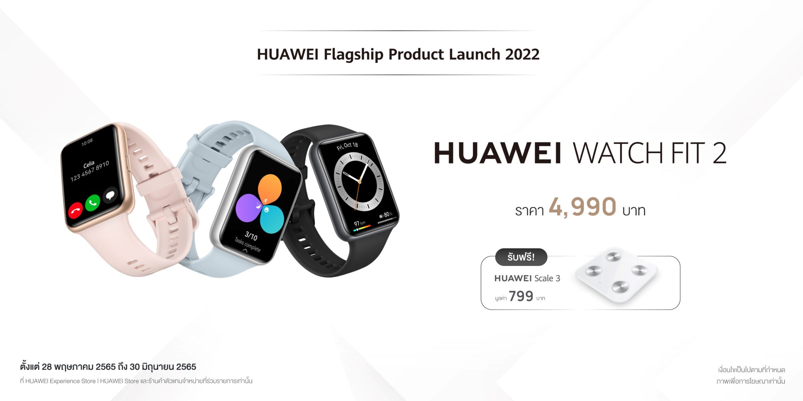 อัปเกรดหน้าจอ AMOLED แบบ HUAWEI FullView Display ขนาดใหญ่ 1.74 นิ้ว อ่านค่าสุขภาพได้ชัดเจนยิ่งกว่าที่เคย ใช้งานได้ต่อเนื่องยาวนานถึง 10 วันสำหรับการใช้งานทั่วไป[7] เชื่อมต่อกับสมาร์ทโฟนและสมาร์ทดีไวซ์ต่างๆ ผ่านสัญญาณ Bluetooth 5.2 มีไมโครโฟนในตัว รองรับการรับสาย-โทรออก สนทนาไร้สายได้อย่างไร้กังวลในรัศมี 100 เมตร[8] มีฟีเจอร์โค้ชแอนิเมชันที่จะมาสาธิตท่าวอร์มอัปที่ถูกต้องใน 7 โหมดออกกำลังกาย ติดตามและเก็บสถิติอย่างละเอียดด้วยโหมดออกกำลังกาย 97โหมด วัสดุกรอบทำจากไฟเบอร์โพลีเมอร์ที่คงทน สวยงาม และน้ำหนักเบา พร้อมสายซิลิโคน มีให้เลือก 3 สี ได้แก่ สีดำ Midnight Black, สีฟ้า Isle Blue และสีชมพู Sakura Pink วางจำหน่ายในราคา 4,990 บาท พร้อมโปรโมชันพิเศษเมื่อสั่งซื้อสินค้าก่อนใคร รับฟรี HUAWEI Scale 3 มูลค่า 799 บาท ตั้งแต่28 พฤษภาคม 2565 ถึง 30 มิถุนายน 2565 ที่หน้าร้าน HUAWEI Experience Store และร้านค้าที่ร่วมรายการ รวมถึงช่องทางออนไลน์อย่าง HUAWEI Store และร้านค้าอย่างเป็นทางการของหัวเว่ยบน Shopee, Lazada, JD Central และ Thisshop และแอปพลิเคชัน My HUAWEI