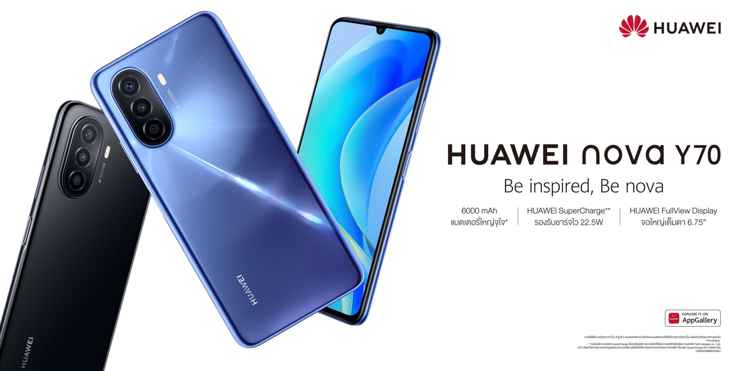 HUAWEI nova Y70 สมาร์ทโฟนตัวจริงเรื่องแบตอึด ชาร์จไวทันใจ 22.5W พร้อมขนาดหน้าจอบิ๊กเบิ้ม6.75 นิ้ว