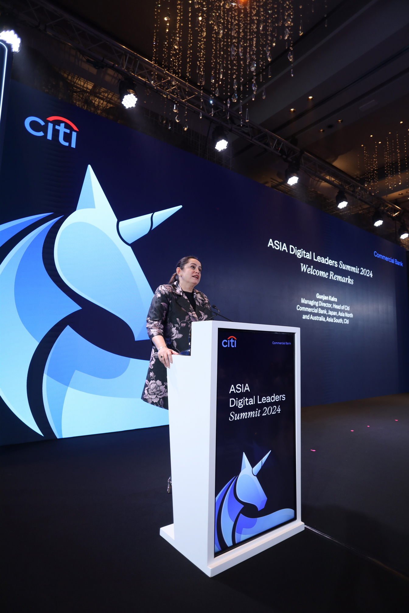 นางสาวกุนจัน คัลรา ผู้บริหารใหญ่สายงานธุรกิจขนาดกลางและขนาดย่อม ประจำประเทศญี่ปุ่น ภูมิภาคเอเชียเหนือและออสเตรเลีย และภูมิภาคเอเชียใต้ ธนาคารซิตี้แบงก์ กล่าวว่า “ธนาคารซิตี้แบงก์ สายงานธุรกิจขนาดกลางและขนาดย่อม มีการนำเสนอผลิตภัณฑ์ทางการเงินระดับโลกให้กับลูกค้าภาคธุรกิจขนาดกลาง ที่ต้องการสร้างการเติบโตอย่างรวดเร็วและขยายธุรกิจสู่ระดับนานาชาติ จากการเล็งเห็นถึงความซับซ้อนและความท้าทายในสถานการณ์ปัจจุบัน ซิตี้แบงก์จึงได้จัดการประชุม Digital Leaders Summit 2024 เพื่อเป็นเวทีให้บริษัทต่าง ๆ แลกเปลี่ยนประสบการณ์ และเรียนรู้แนวทางการรับมือกับความท้าทายรวมถึงโอกาสในการบรรลุเป้าหมายทางธุรกิจ ซึ่งในฐานะธนาคารระดับโลกที่มีประสบการณ์มากกว่า 100 ปี และดำเนินธุรกิจในกว่า 90 ตลาด ซิตี้แบงก์เชื่อมั่นเป็นอย่างยิ่งว่าจะสามารถส่งมอบความรู้และข้อมูลเชิงลึก อันเป็นประโยชน์แก่ผู้เข้าร่วมงานทุกฝ่ายได้เป็นอย่างดี”