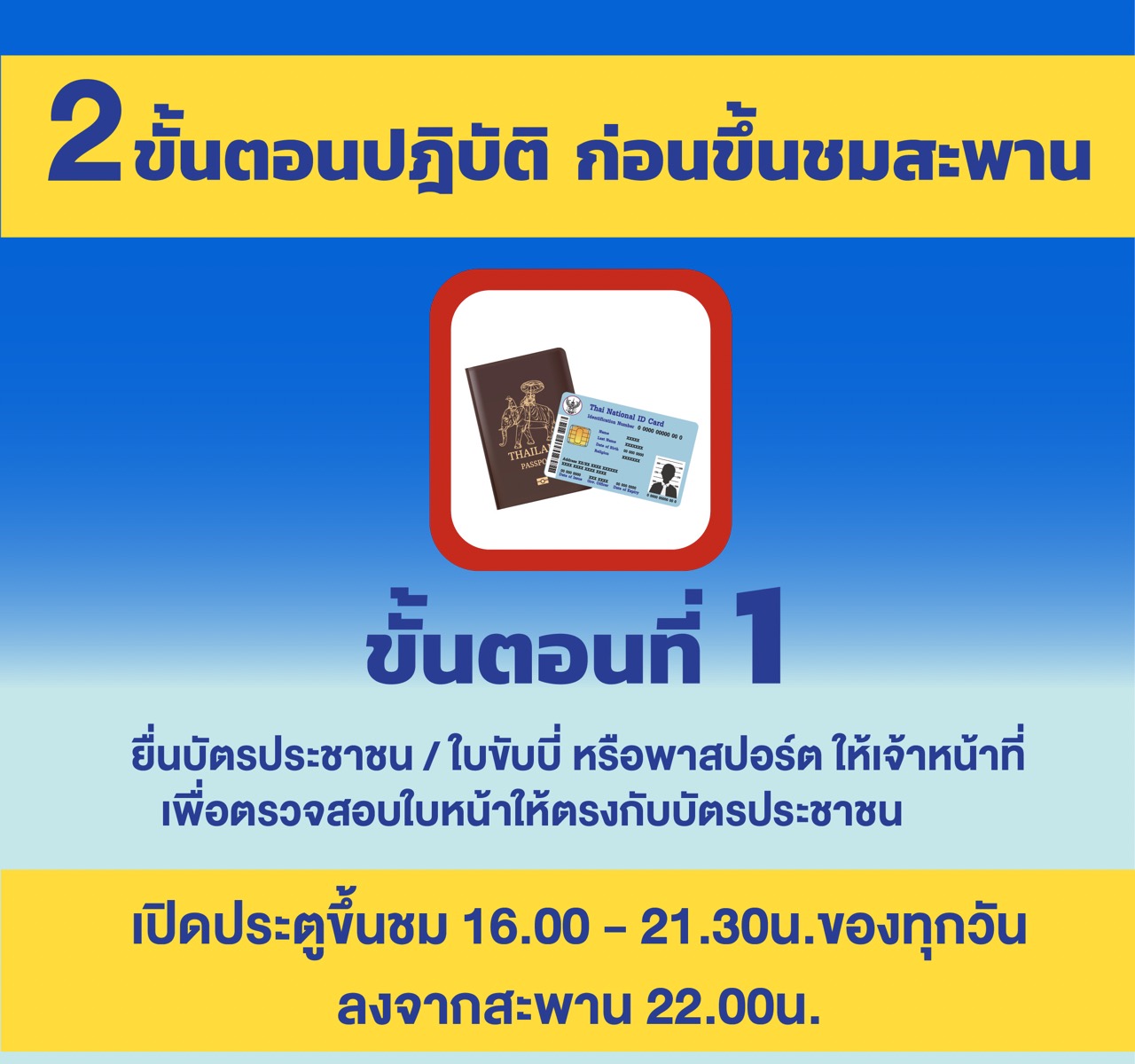 ขั้นตอนสำคัญก่อนขึ้นชมสะพาน เพื่อความสะดวกและปลอดภัย โปรดปฏิบัติตามขั้นตอนดังนี้