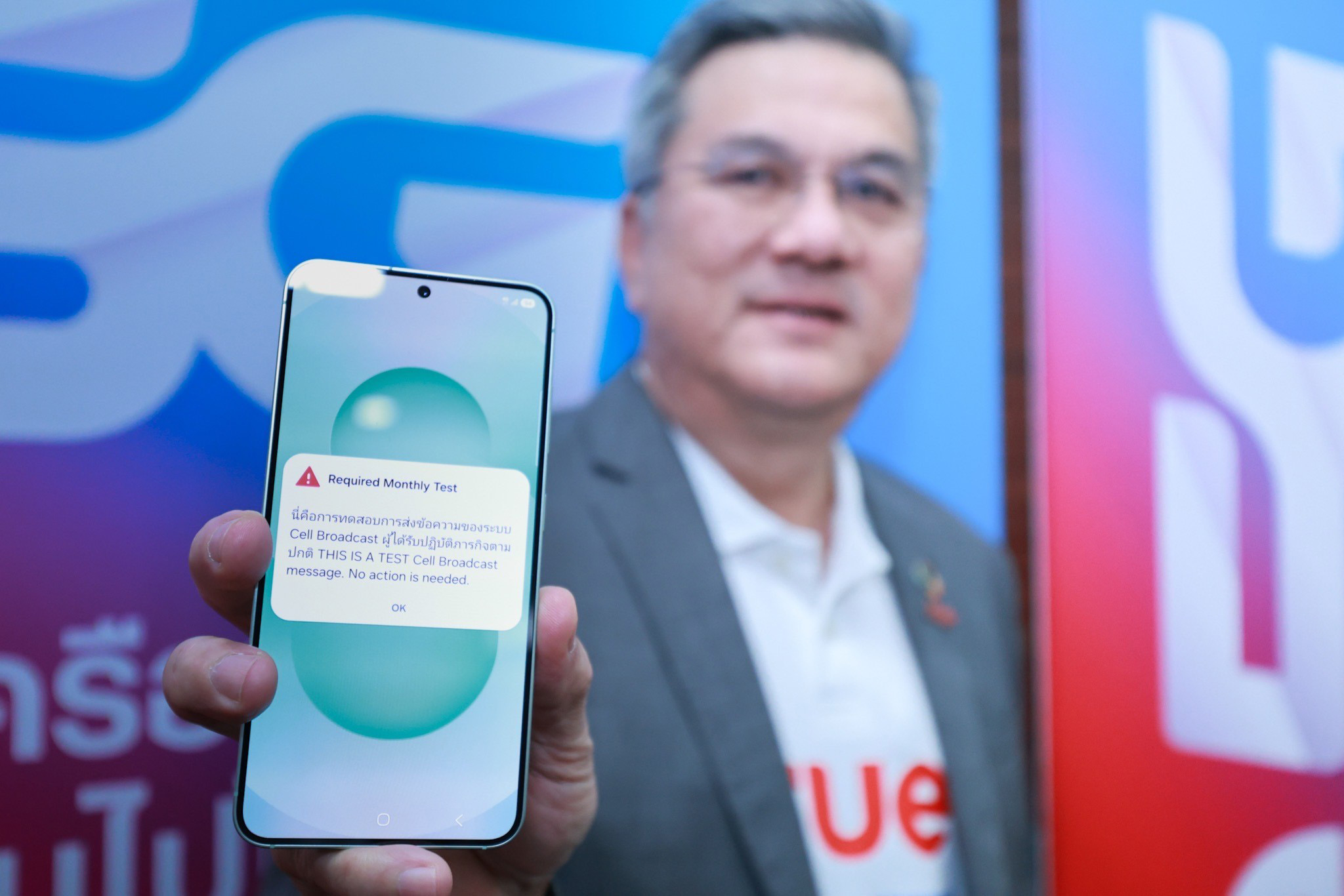 การทดสอบระบบแจ้งเตือนภัยฉุกเฉิน Cell Broadcast Service ร่วมกับสำนักงานคณะกรรมการกิจการกระจายเสียง กิจการโทรทัศน์ และกิจการโทรคมนาคมแห่งชาติ (กสทช.) บนมือถือ iPhone และมือถือระบบ Android ในครั้งนี้ถือเป็นก้าวสำคัญของประเทศไทยสู่การมีระบบแจ้งเตือนภัยที่มีมาตรฐานระดับสากล ซึ่งหลายประเทศทั่วโลกได้นำมาใช้อย่างแพร่หลาย อาทิ สหรัฐอเมริกา ญี่ปุ่น เกาหลีใต้ และประเทศในกลุ่มสหภาพยุโรป