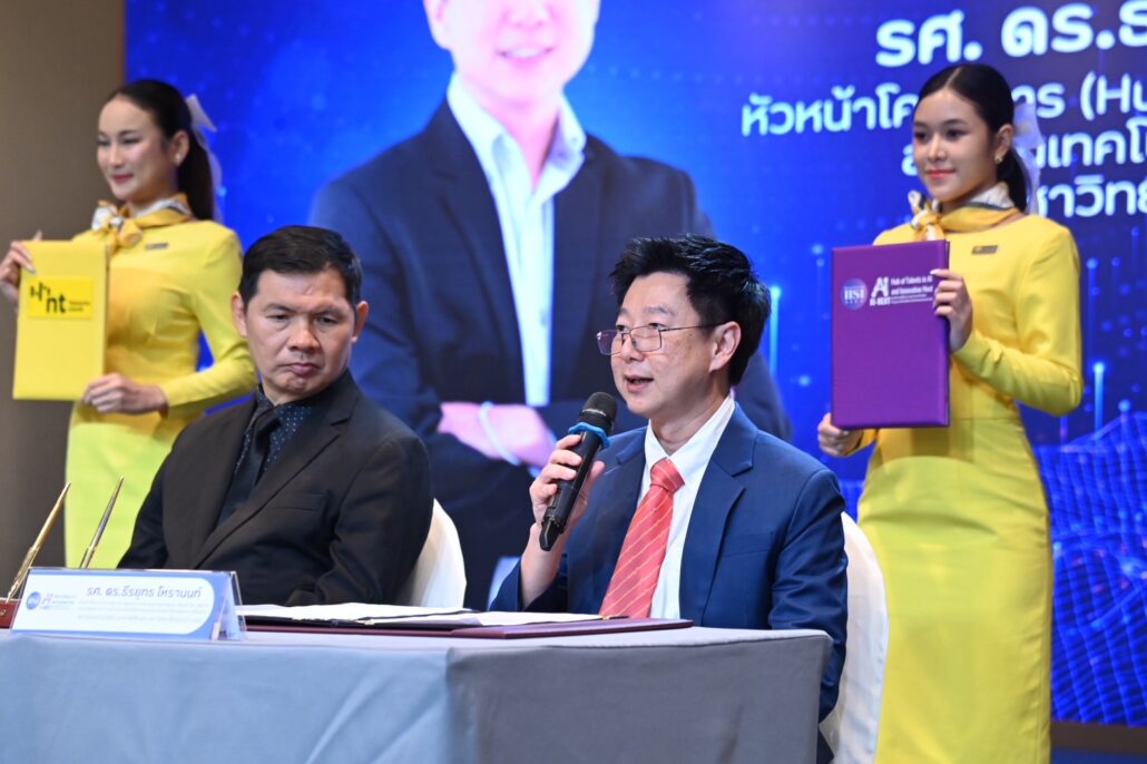พันเอก สรรพชัยย์ หุวะนันทน์ กรรมการผู้จัดการใหญ่  บริษัท โทรคมนาคมแห่งชาติ จำกัด (มหาชน) (NT)  ลงนามบันทึกข้อตกลงความร่วมมือ (MOU) ด้านเทคโนโลยีวิทยาการข้อมูลนวัตกรรมและปัญญาประดิษฐ์ ร่วมกับ ศูนย์วิจัยข้อมูลอัจฉริยะและนวัตกรรมการบริการ (IISI) โดย ศาสตราจารย์ ดร.ธนารักษ์ ธีระมั่นคง และ โครงการศูนย์รวมผู้เชี่ยวชาญด้านเทคโนโลยีปัญญาประดิษฐ์และนวัตกรรมแห่งอนาคต (Hub of Talents in AI and Innovation Next (AI-Next) ภายใต้สถาบันเทคโนโลยีนานาชาติสิรินธร มหาวิทยาลัยธรรมศาสตร์ โดย รองศาสตราจารย์ ดร.ธีรยุทธ โหรานนท์ และ สมาคมปัญญาประดิษฐ์ประเทศไทย (AIAT) โดย ดร.เทพชัย ทรัพย์นิธิ  เพื่อการต่อยอดความร่วมมือพัฒนาโครงการด้านเอไอ ณ ห้องจัดเลี้ยง อาคาร 9 สำนักงาน NT แจ้งวัฒนะ