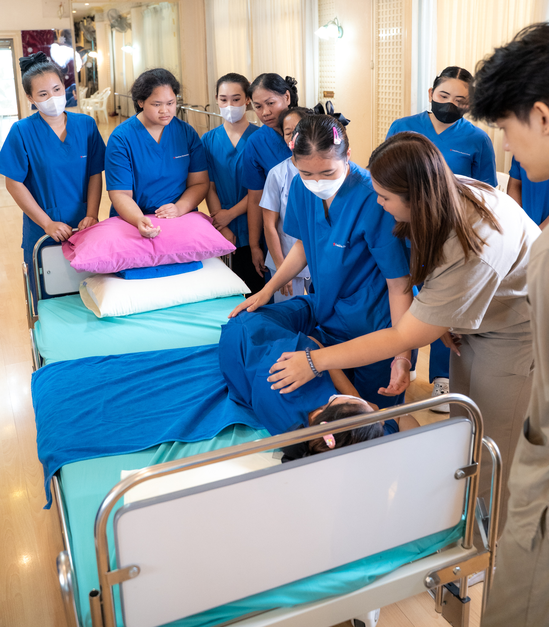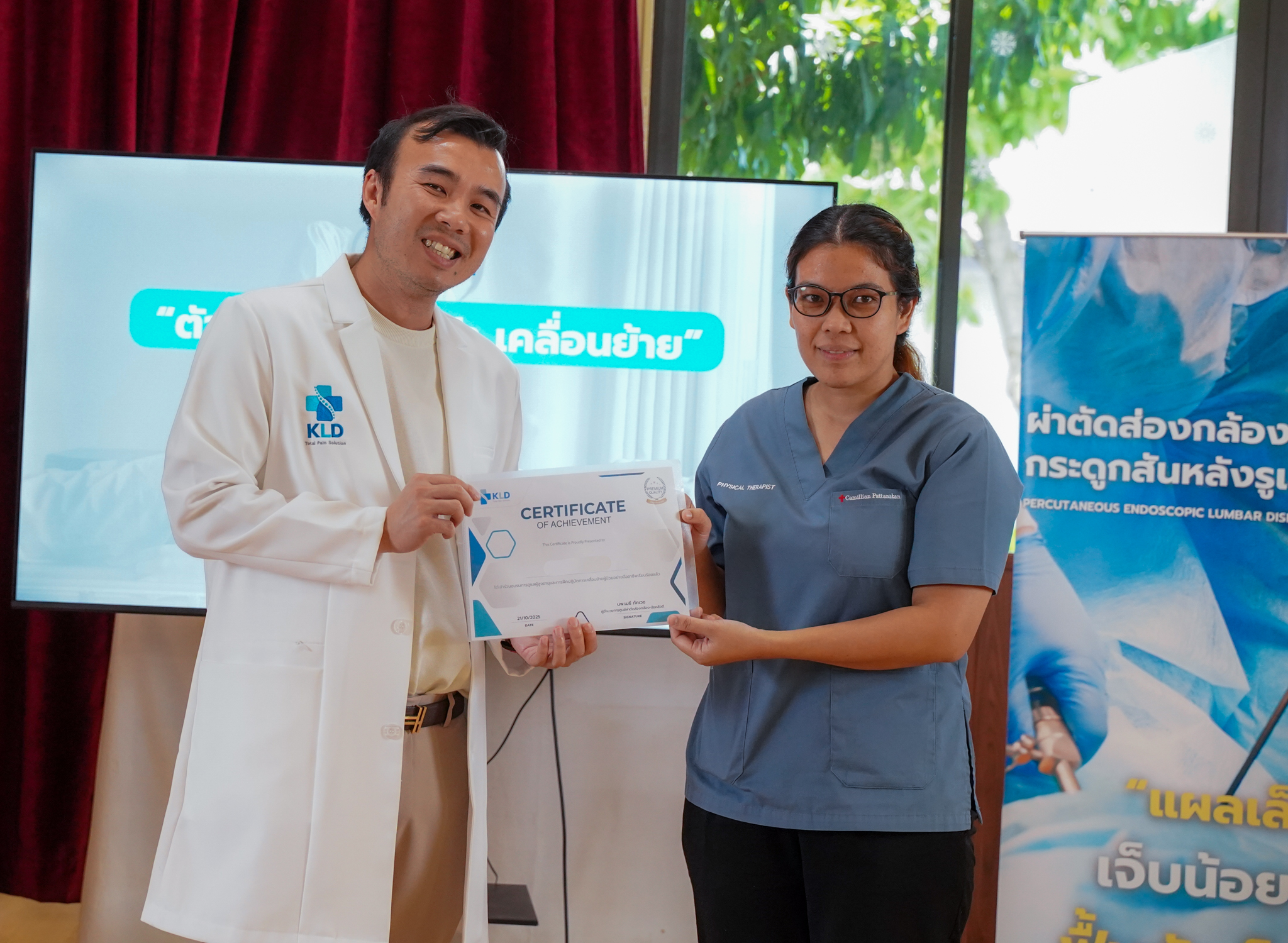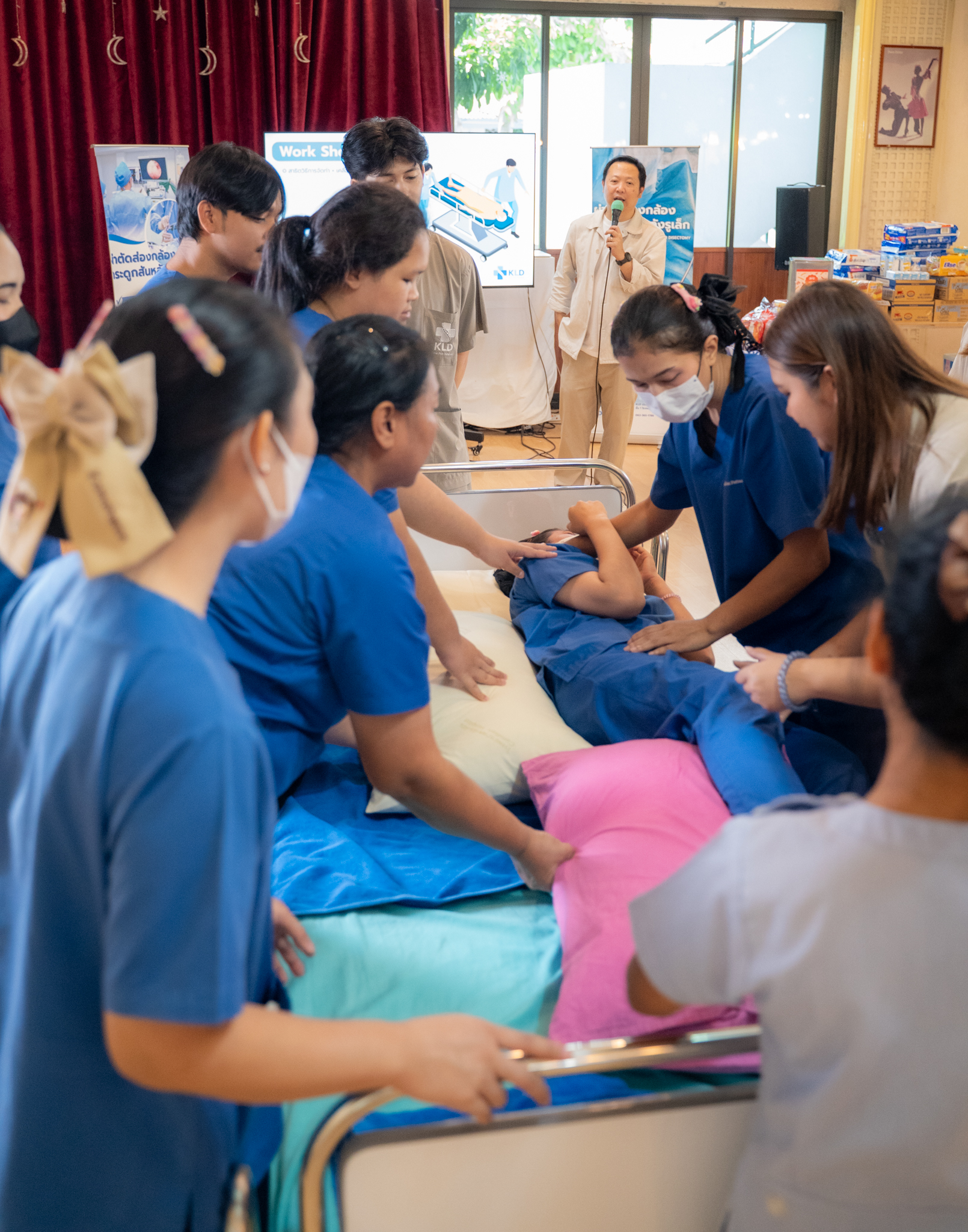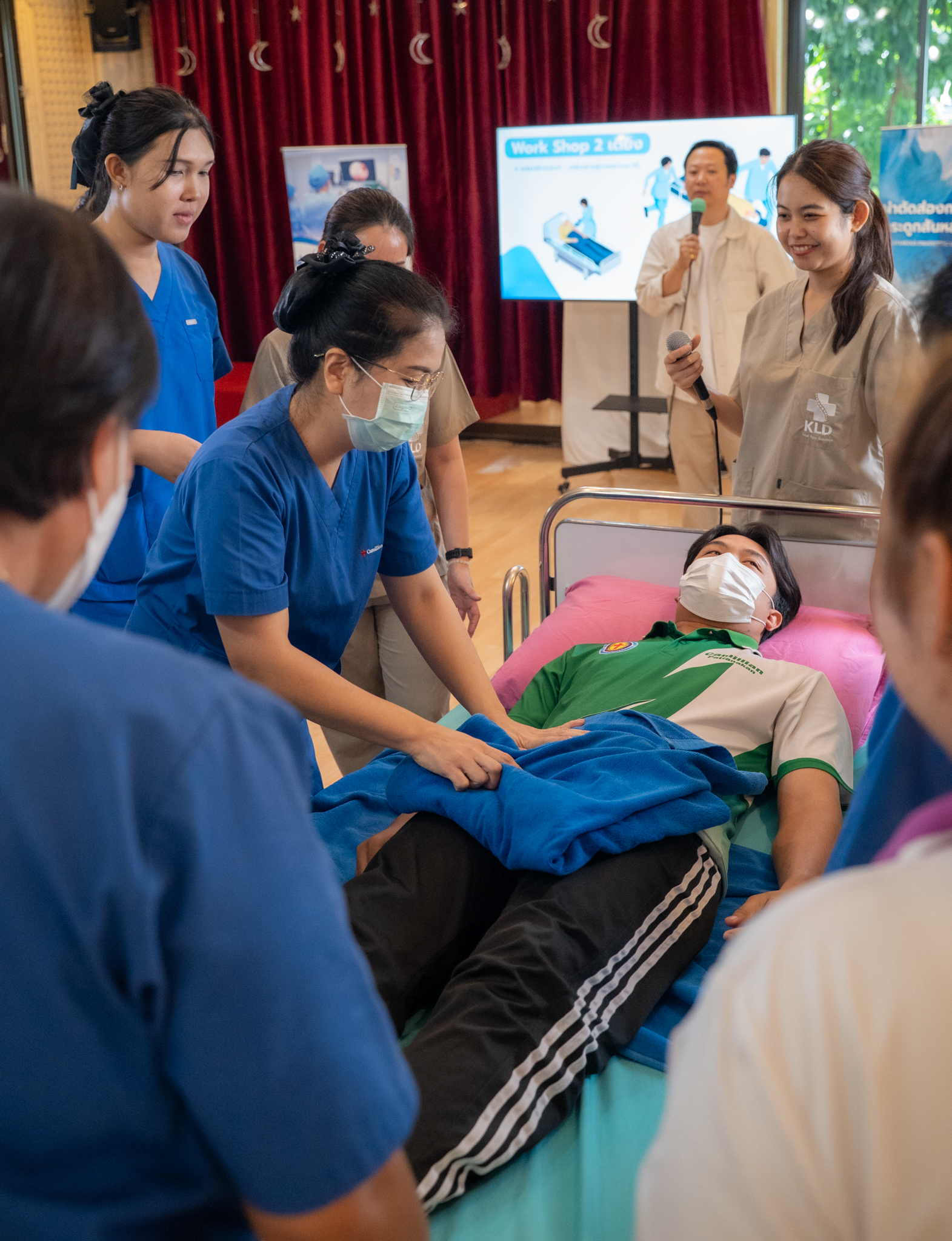 อีกหนึ่งไฮไลท์สำคัญคือการจัดช่วง Workshop “จัดท่า–ยืดท่าอย่างปลอดภัย” สำหรับเจ้าหน้าที่ผู้ดูแลผู้สูงอายุ เพื่อเสริมทักษะในการเคลื่อนย้ายและป้องกันการบาดเจ็บ ปิดท้ายด้วยพิธีมอบเกียรติบัตรให้กับเจ้าหน้าที่ที่เข้าร่วมทุกท่าน