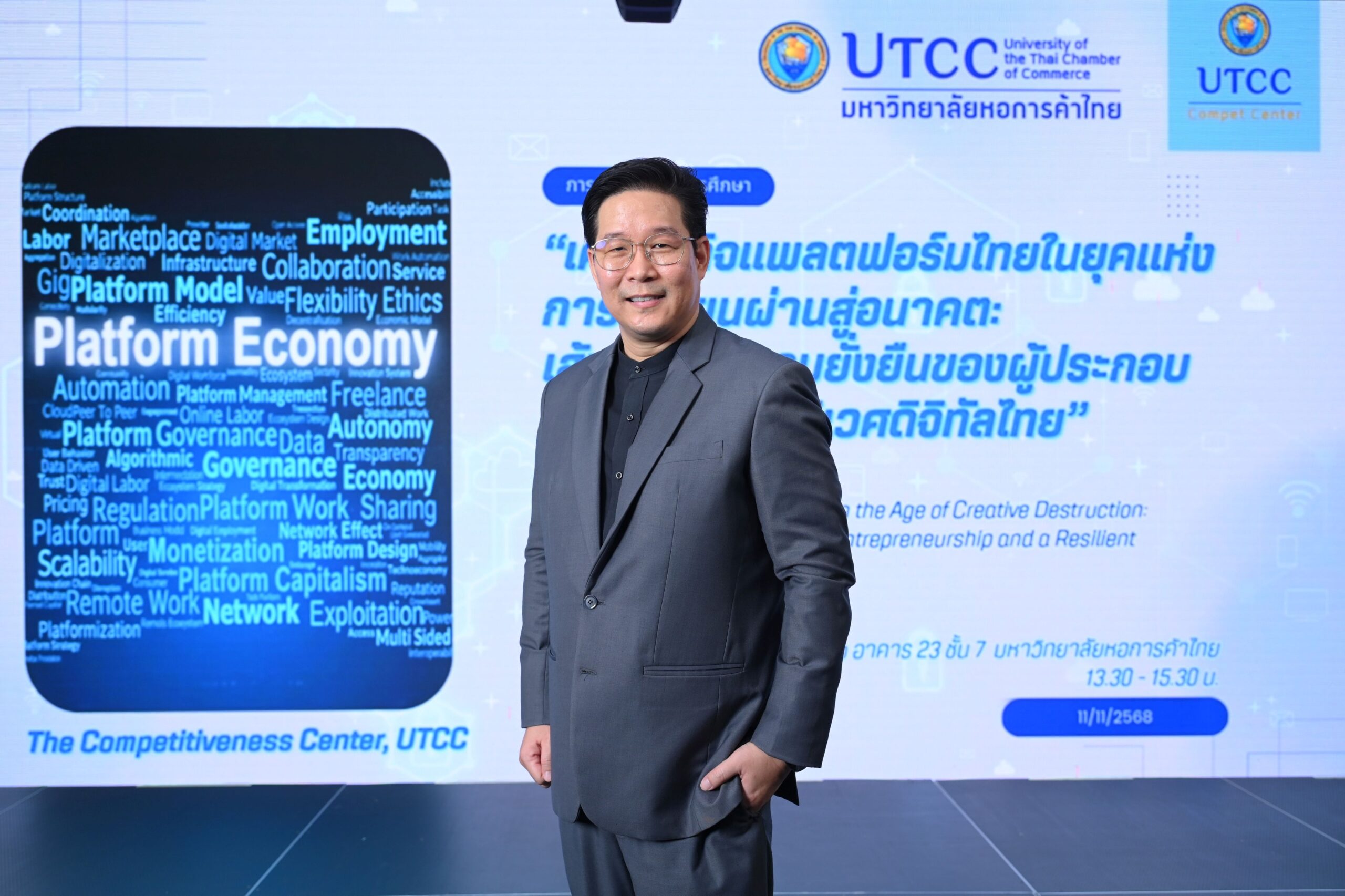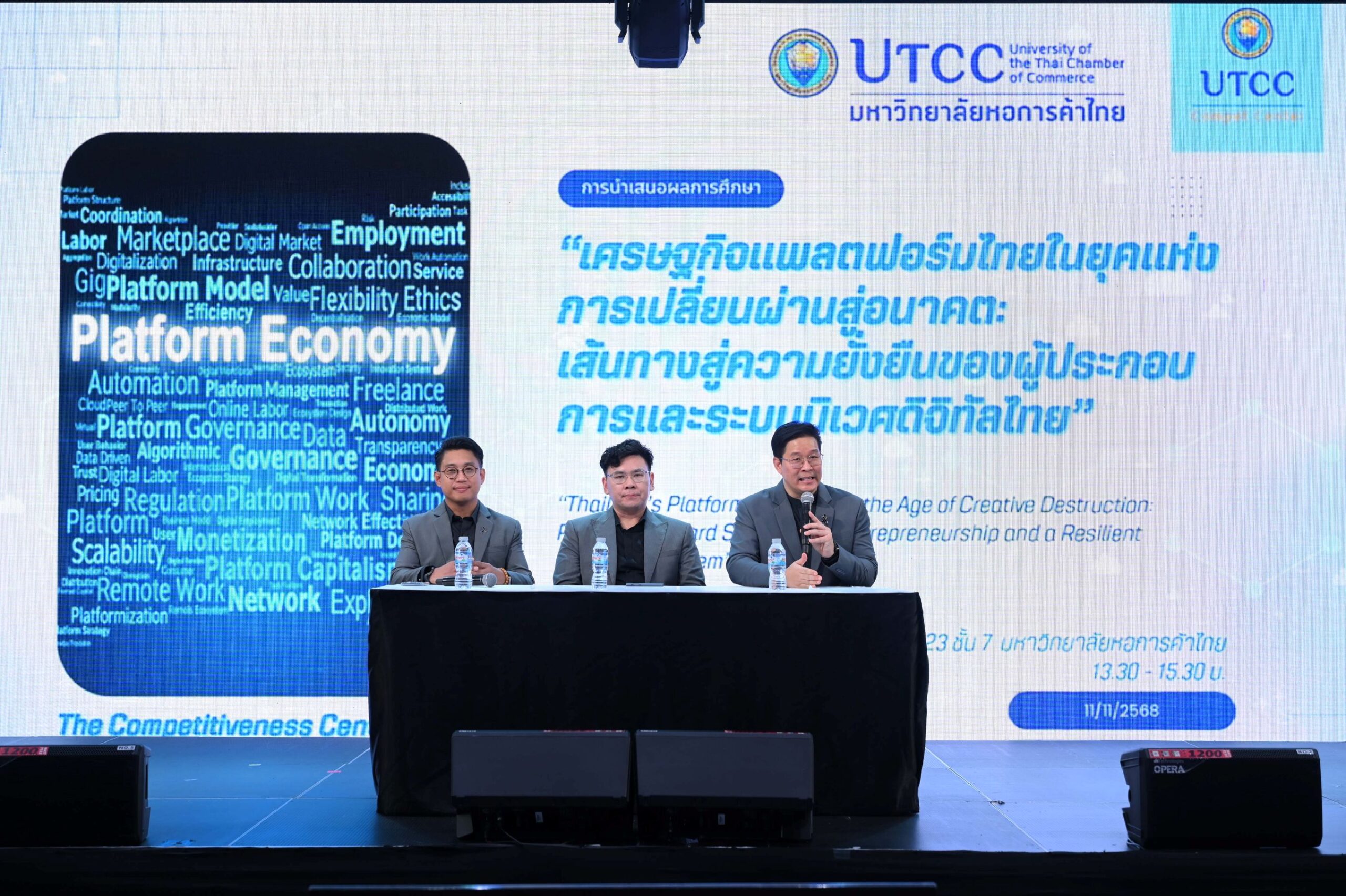 ศูนย์ศึกษาการพัฒนาขีดความสามารถเพื่อความยั่งยืน มหาวิทยาลัยหอการค้าไทย เปิดเผยบทวิเคราะห์เชิงลึกเกี่ยวกับพลวัตของแพลตฟอร์มดิจิทัลในประเทศไทย จากรายงานปกขาว “เศรษฐกิจแพลตฟอร์มไทยในยุคแห่งการเปลี่ยนผ่านสู่อนาคต: เส้นทางสู่ความยั่งยืนของผู้ประกอบการและระบบนิเวศดิจิทัลไทย” โดยเชื่อมโยงสถานการณ์ปัจจุบันเข้ากับ 2 กรอบคิดที่ได้รับรางวัลโนเบลสาขาเศรษฐศาสตร์ปี 2025 ซึ่งระบุปัจจัยสำคัญของการเติบโตอย่างยั่งยืนผ่านความก้าวหน้าทางเทคโนโลยี โดยมีอาจารย์ผู้ทรงคุณวุฒิจากศูนย์ศึกษาการพัฒนาขีดความสามารถเพื่อความยั่งยืนและคณะการสร้างเจ้าของธุรกิจสร้างสรรค์ มหาวิทยาลัยหอการค้าไทย ร่วมให้ข้อมูล