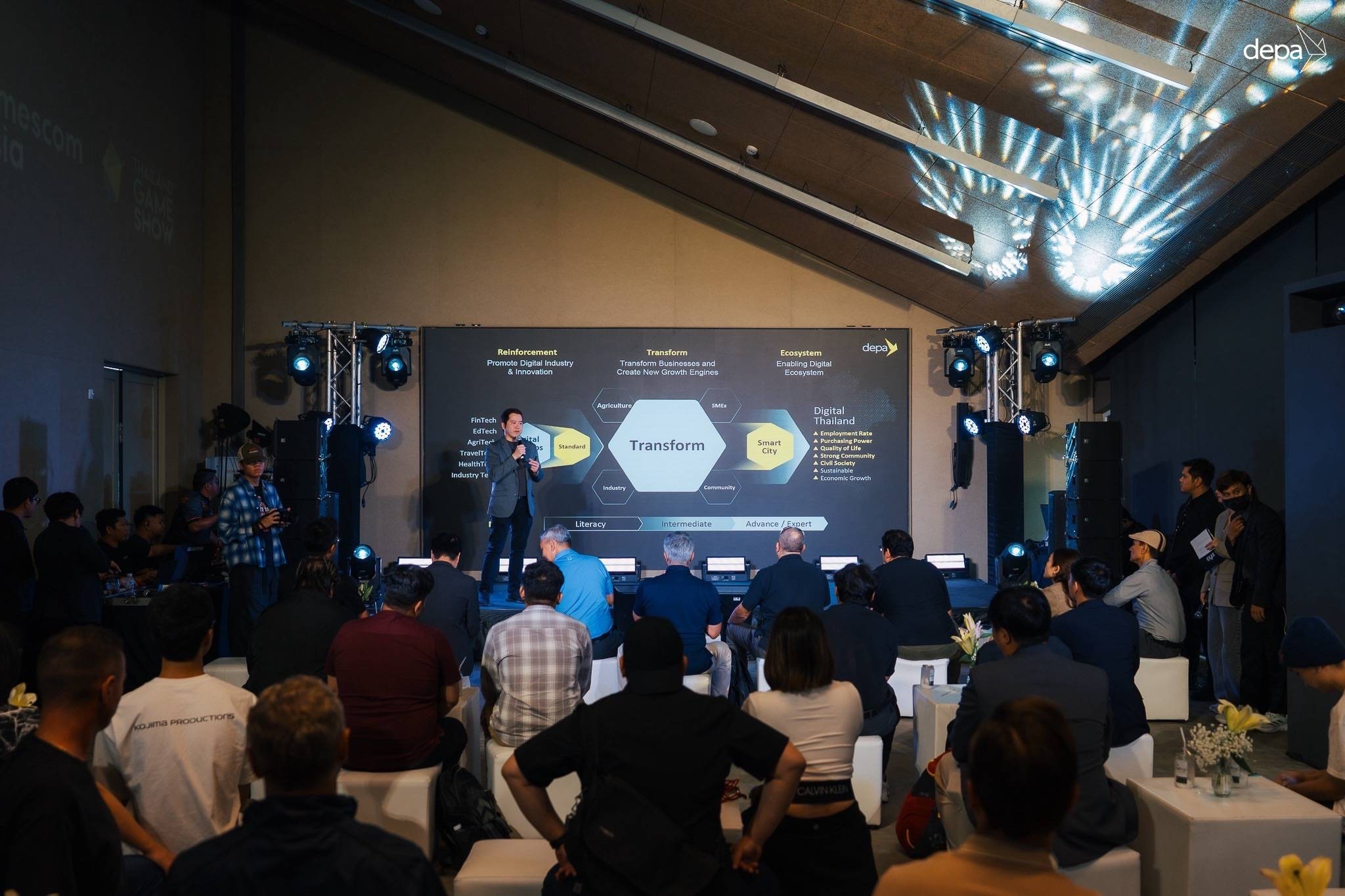 ผศ.ดร.ณัฐพล นิมมานพัชรินทร์ ผู้อำนวยการใหญ่ ดีป้า เปิดเผยว่า อุตสาหกรรมเกมของไทยมีมูลค่าสูงถึง 35,000 ล้านบาท และมีอัตราการเติบโตอย่างต่อเนื่อง ซึ่งแสดงให้เห็นถึงความสำคัญของอุตสาหกรรมนี้ต่อเศรษฐกิจของประเทศ โดยภาครัฐได้เดินหน้าพัฒนาและผลักดันร่างพระราชบัญญัติ (พ.ร.บ.) ส่งเสริมอุตสาหกรรมเกม เพื่อส่งเสริมและยกระดับอุตสาหกรรมเกมไทยอย่างเป็นระบบ ทั้งในด้านการลงทุน การคุ้มครองทรัพย์สินทางปัญญา และการพัฒนาบุคลากรด้านดิจิทัล เพื่อสร้างความมั่นใจแก่ผู้ประกอบการและนักลงทุน ทั้งในและต่างประเทศ อีกทั้งประเทศไทยมีบุคลากรคุณภาพสูงที่เชี่ยวชาญด้าน Animation, Computer Graphics, Game Studio, Visual Effect และ Digital Content จำนวนเพียงพอต่อความต้องการของตลาดโลก นอกจากนี้ยังมีสตูดิโอและนักพัฒนาเกมที่มีประสบการณ์พร้อมรองรับโครงการขนาดใหญ่จากต่างประเทศ
