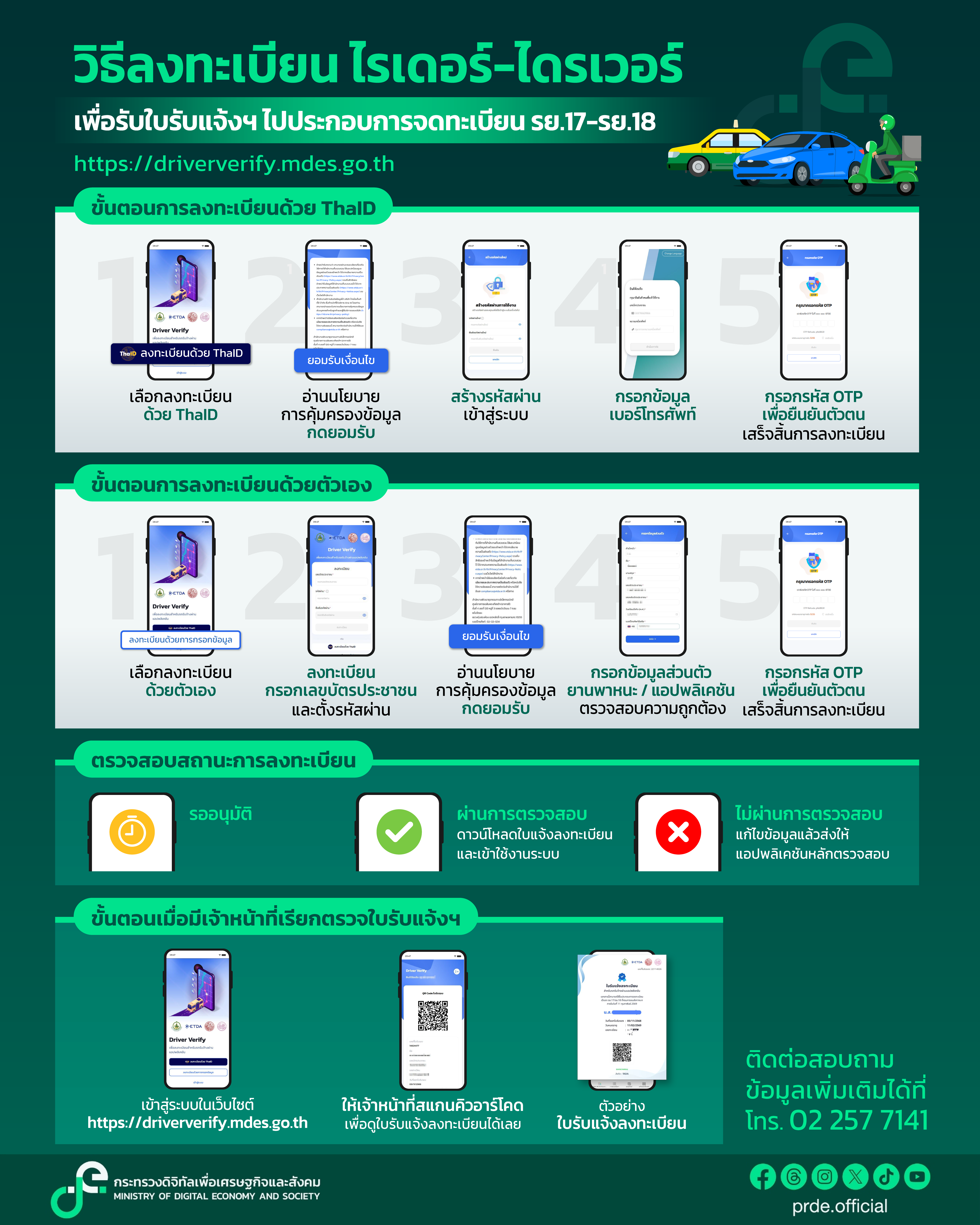 • เปิดให้ลงทะเบียนแสดงเจตจำนงผ่านเว็บไซต์ https://driververify.mdes.go.th (ล็อกอินผ่าน Thai ID) ไปจนถึงวันที่ 28 ก.พ. 2569