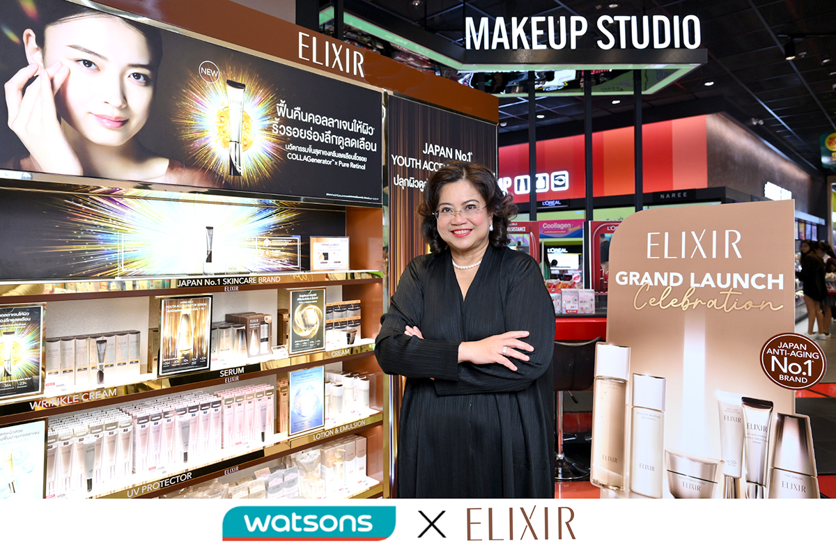 คุณนวลพรรณ ชัยนาม กรรมการผู้จัดการ วัตสัน ประเทศไทย กล่าวว่า “การร่วมมือกับแบรนด์ระดับโลกอย่าง ELIXIR ในครั้งนี้ ไม่เพียงแต่ช่วยสร้างความคึกคักให้วงการบิวตี้ไทย แต่ยังตอกย้ำกลยุทธ์ของเราในการก้าวสู่การเป็น Beauty & Wellness Destination ที่คัดสรรแบรนด์ระดับโลกที่มีศักยภาพและได้รับการยอมรับในระดับสากลมาสู่มือผู้บริโภคชาวไทยโดยตรง รวมถึงมองเห็นโอกาสเติบโตในตลาดสกินแคร์ระดับพรีเมียม ที่ลูกค้ามีความต้องการผลิตภัณฑ์ที่มีประสิทธิภาพสูงและมาพร้อมเทคโนโลยีที่น่าเชื่อถือ ซึ่งเราคาดว่าด้วยความเชี่ยวชาญกว่า 40 ปีของ ELIXIR จะช่วยมอบโซลูชันที่มีประสิทธิภาพสูงให้แก่ลูกค้า ตอบโจทย์ความต้องการของผู้บริโภคชาวไทยได้อย่างครอบคลุมมากยิ่งขึ้น”