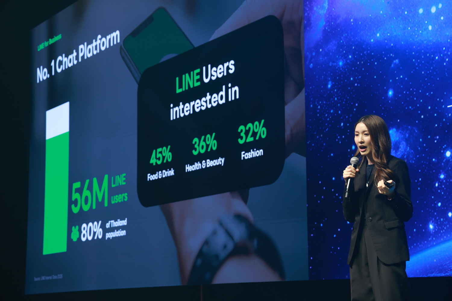 จากพฤติกรรมดังกล่าว ทำให้ LINE เป็นหนึ่งในกลยุทธ์การทำ Chat Commerce ที่หลากหลายธุรกิจเลือกใช้ เนื่องจากมีฐานผู้ใช้งานชาวไทยกว่า 56 ล้านคน ช่วยให้ผู้ประกอบการสามารถเข้าถึงลูกค้าได้ในวงกว้าง ขณะเดียวกันผู้ใช้งาน LINE ยังมีความสนใจในหมวดหมู่ธุรกิจเกี่ยวกับ อาหารและเครื่องดื่ม 45% สุขภาพและความงาม 36% และแฟชั่น 32% ซึ่งเป็นหมวดหมู่ยอดนิยมที่มีการทำการตลาดและปิดการขายผ่านแชทอยู่แล้ว ทำให้ LINE OA มีแนวโน้มเติบโตต่อเนื่อง โดยปัจจุบัน แบรนด์มีการเปิดใช้งาน LINE OA รวมเกิน 7 ล้านบัญชี และคาดว่าภายในปีนี้จะเติบโตเพิ่มขึ้น 16% จากปีก่อน แสดงถึงความเชื่อมั่นของผู้ประกอบการที่เลือก LINE เป็นช่องทางหลักในการสื่อสารและทำธุรกิจ