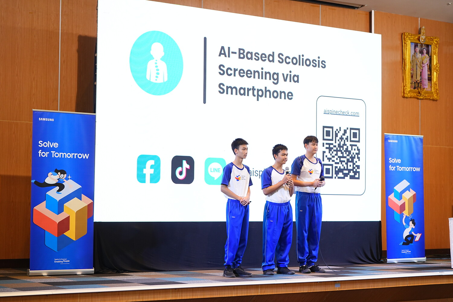 ทีม AI SpineCheck ใช้เทคโนโลยี AI วิเคราะห์ภาพถ่ายของแผ่นหลังเด็ก เพื่อตรวจหาความผิดปกติและประเมินระดับความเสี่ยงเบื้องต้น ลดภาระการตรวจในโรงเรียนขนาดใหญ่ และเพิ่มโอกาสให้เด็กได้รับการรักษาตั้งแต่ระยะเริ่มแรก