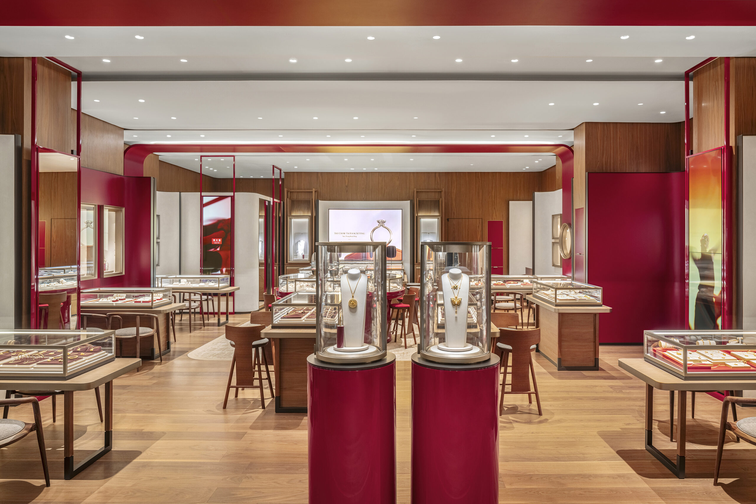 ร้านสยามพารากอนแห่งใหม่นี้โดดเด่นด้วยโทนสี “Chow Tai Fook Timeless Red” อันเป็นเอกลักษณ์ พื้นที่ภายในสะท้อนความงดงามของงานฝีมือและศิลปะจีน ผ่านวัสดุที่ประณีตและการจัดแสงที่พิถีพิถัน สร้างบรรยากาศอบอุ่นดุจแกลเลอรี เพื่อสร้างสายสัมพันธ์และความเชื่อมโยงทางอารมณ์ กลุ่มบริษัทได้เปิดตัวคอลเลกชั่นพิเศษเฉพาะประเทศไทยที่สะท้อนวัฒนธรรมท้องถิ่น