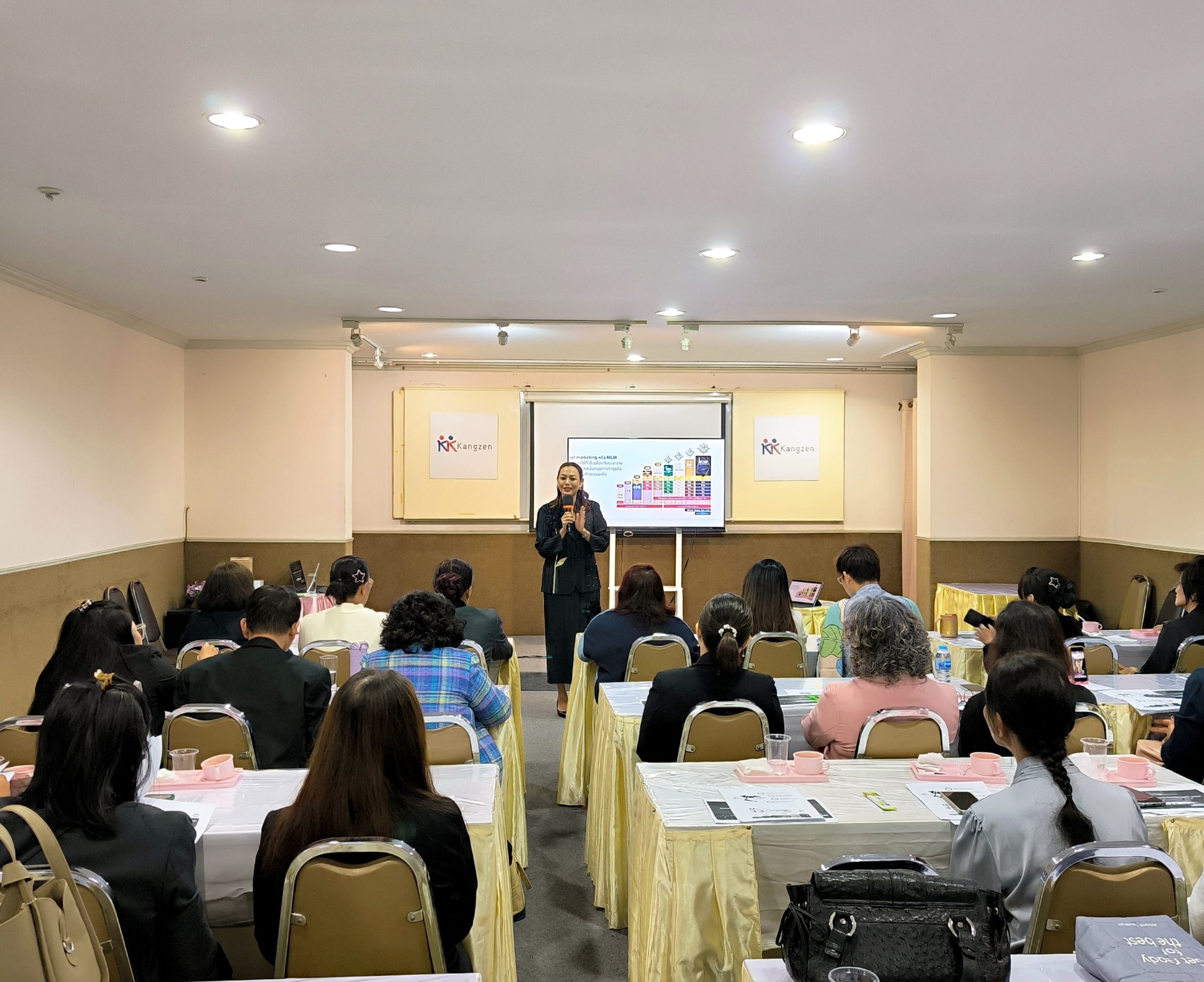บริษัท คังเซน-เคนโก อินเตอร์เนชั่นแนล จำกัด จัดงาน KANGZEN THE NEXT LEVEL UP 2026 ให้กับสมาชิกทั่วประเทศ โดยได้รับเกียรติจากนักธุรกิจคังเซนระดับสูงนำสมาชิกในองค์กรเข้าร่วมงาน นำโดย ดร.ณัฐพัชร์ อำพันธ์ยุทธ์ ประธานกรรมการบริหาร ร่วมแสดงวิสัยทัศน์ และแถลงนโยบายในการขับเคลื่อนความสำเร็จ พร้อมก้าวสู่ 33 ปี ด้วยความมุ่งมั่น สานต่อเจตนารมณ์ “ธุรกิจขายตรงสีขาว” โดยยึดหลักความสำเร็จที่ยั่งยืนด้วย “THE 4 PILLARS OF SUCCESS” ( ขาย, ขยาย, บริหาร, ส่งต่อ ) โดยได้รับเกียรติจาก คุณกัญญณัช อัครโชติเวช ผู้อำนวยการฝ่ายการตลาด นำเสนอ Kickoff Campaign โดยมุ่งเน้นสนับสนุนท่านสมาชิกในการสร้างสมาชิกใหม่ ขยายและบริหารองค์กรให้เติบโตในตำแหน่งที่สูงขึ้น และสร้างรายได้ที่มั่นคง พร้อมรับฟังแนวทางขับเคลื่อนในส่วนภาคสนามจาก คุณประเวศ หัตถกอง ผู้อำนวยการฝ่ายพัฒนาธุรกิจ กับแผนการทำงาน และการจัดกิจกรรมในปี 2569 เพื่อสนับสนุนการทำงานของท่านสมาชิก และเป็นการนำเสนอแผนการจัดอบรมทั้งออนไลน์ และออฟไลน์ บรรยากาศเป็นไปด้วยความอบอุ่นและเป็นกันเอง