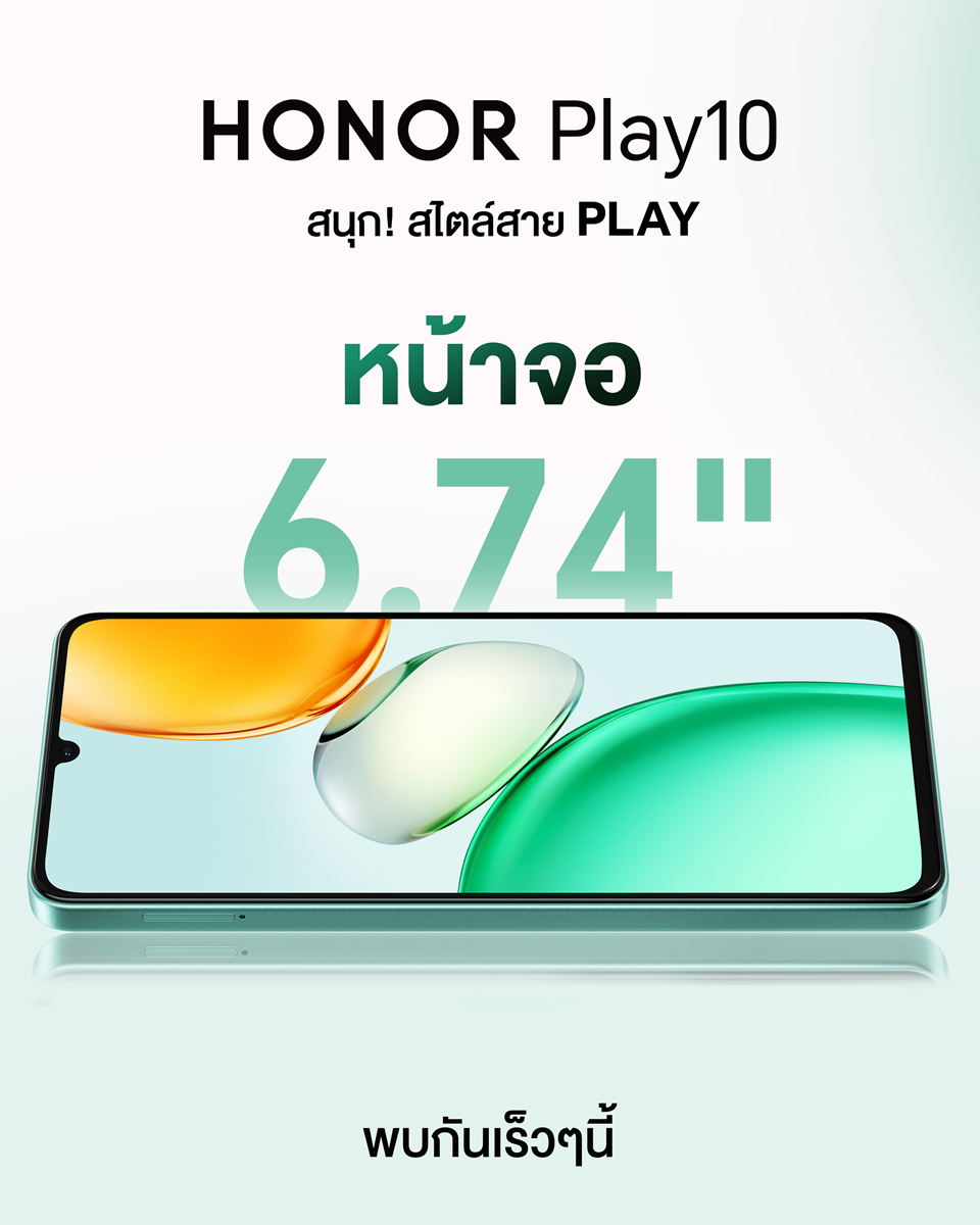 นอกจากนี้ HONOR ยังเตรียมเปิดตัวสมาร์ตโฟนอีกรุ่นที่น่าจับตามองอย่าง HONOR Play 10 มาพร้อม
