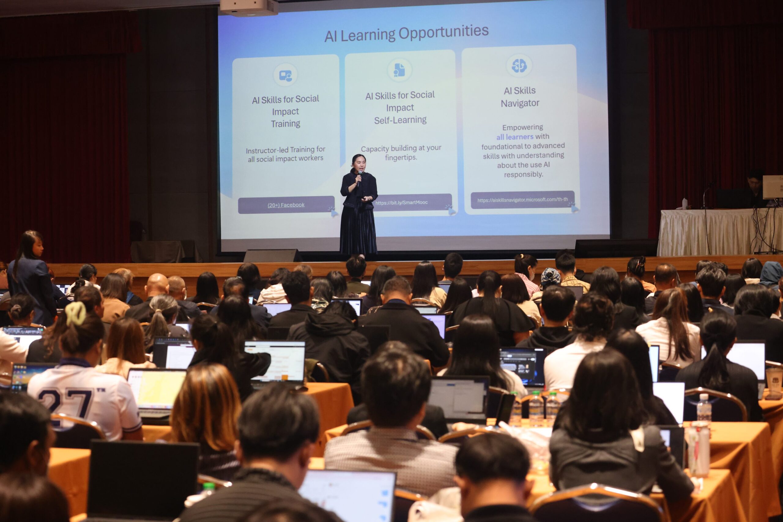 ไมโครซอฟท์ ประเทศไทย ร่วมกับ คณะกรรมการเศรษฐกิจและสังคมแห่งเอเชียและแปซิฟิก องค์การสหประชาชาติ (ESCAP), ศูนย์ความร่วมมือเพื่อขับเคลื่อนการพัฒนาดิจิทัล (CCDKM) ประจำมหาวิทยาลัยสุโขทัยธรรมาธิราช (มสธ.) และสำนักงานส่งเสริมเศรษฐกิจดิจิทัล (depa) จัดกิจกรรมอบรม “AI for Social Impact” เพื่อเสริมสร้างทักษะดิจิทัลและความรู้ด้าน Generative AI ให้บุคคลากรและผู้นำภาคประชาสังคม สามารถนำเทคโนโลยีไปสร้างความเปลี่ยนแปลงเชิงบวก พร้อมเพิ่มประสิทธิภาพการทำงานในยุค AI-Driven สานต่อวิสัยทัศน์ของโครงการ Microsoft Elevate มุ่งถ่ายทอดองค์ความรู้ และส่งเสริมให้ทุกภาคส่วนสามารถเข้าถึง AI ได้อย่างมีประสิทธิภาพเพื่อยกระดับคุณภาพชีวิต ตลอดจนลดความเหลื่อมล้ำและช่องว่างทางทักษะดิจิทัลในสังคมไทย