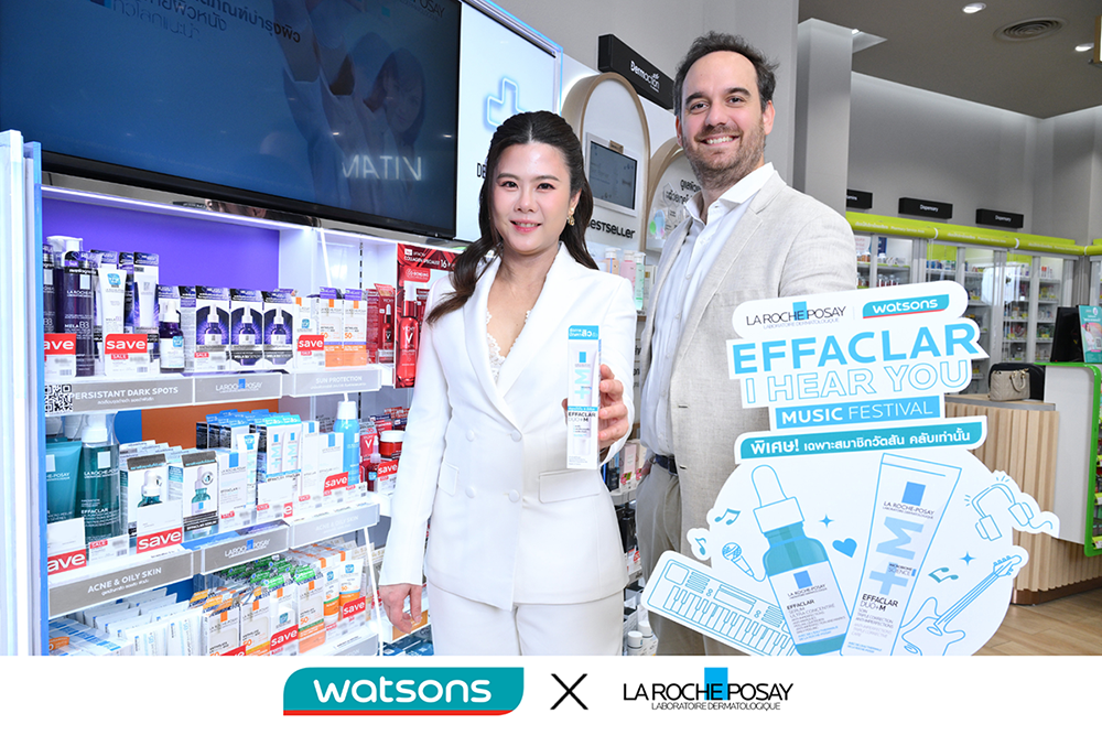 วัตสัน ประเทศไทย ผู้นำร้านเพื่อสุขภาพและความงามอันดับหนึ่งของประเทศ เดินหน้ายกระดับประสบการณ์รูปแบบใหม่แก่สมาชิกวัตสัน คลับ ให้เหนือกว่าการชอปปิงสินค้า โดยผนึกกำลังพันธมิตรคนสำคัญ ลา โรช-โพเซย์ (La Roche-Posay) แบรนด์ผลิตภัณฑ์บำรุงผิวที่แพทย์ผิวหนังทั่วโลกแนะนำเป็นอันดับ 1 จากฝรั่งเศส ในเครือลอรีอัล กรุ๊ป ร่วมสร้างปรากฏการณ์ความร่วมมือครั้งยิ่งใหญ่ ในกิจกรรมสุดพิเศษ “EFFACLAR I HEAR YOU MUSIC FESTIVAL” เทศกาลดนตรีรูปแบบใหม่ ครั้งแรกในประเทศไทยที่ผสานศาสตร์แห่งการดูแลผิวเข้ากับพลังบำบัดของดนตรี ตอบโจทย์ไลฟ์สไตล์ผู้บริโภคยุคใหม่ ภายใต้คอนเซปต์ “ฮีลสิว ฮีลใจ”