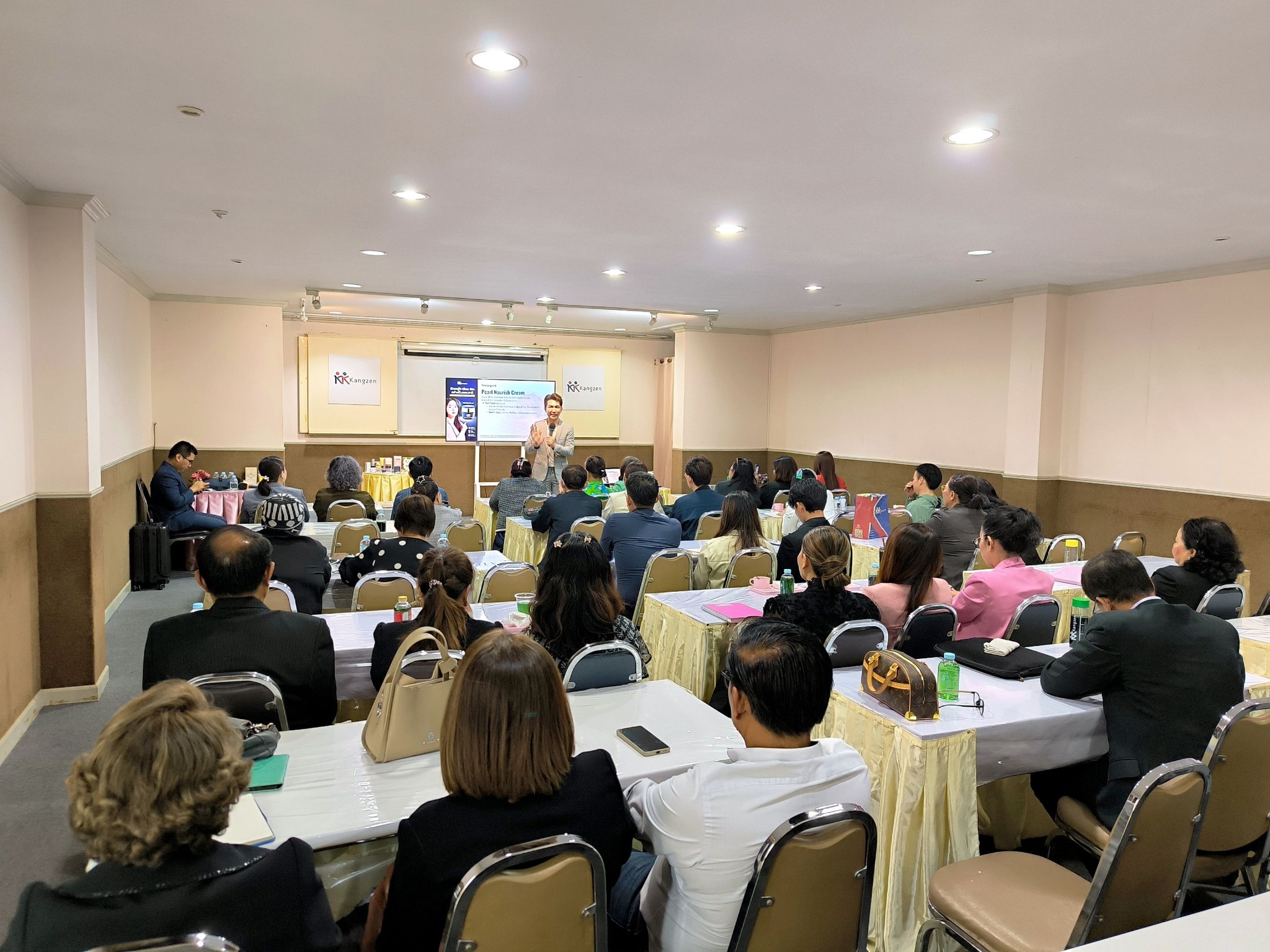 ทั้งนี้ ได้รับเกียรติจาก ดร.ณัฐพัชร์ อำพันธ์ยุทธ์ ประธานกรรมการบริหาร กับเส้นทางสู่ความสำเร็จ 33 ปี พร้อมสูตรสำเร็จสร้างรายได้และความสำเร็จอย่างยั่งยืน สร้างความเชื่อมั่นในระบบการบริหารและระบบสนับสนุน กับวิสัยทัศน์ใหม่ 2027 พร้อมฟัง PILLAR 2: E1 (Expanding) – “ทางลัดสู่ไต้หวันยกทีม กับ Model KK 1-2-4-6 Roadmap“ กับกลยุทธ์พิชิตแคมเปญ สร้างสายงาน สะสมแต้ม และการรักษาคุณสมบัติ โดยผู้อำนวยการฝ่ายการตลาด กัญญณัช อัครโชติเวช และได้รับเกียรติจากผู้ประสบความสำเร็จในพื้นที่ร่วมแชร์ประสบการณ์ ความประทับใจ รวมทั้งเทคนิคการทำงาน เพื่อเป็นแรงบันดาลใจให้กับผู้เข้าอบรมทุกท่าน ก้าวสู่ความสำเร็จร่วมกัน “คังเซน-เคนโก”