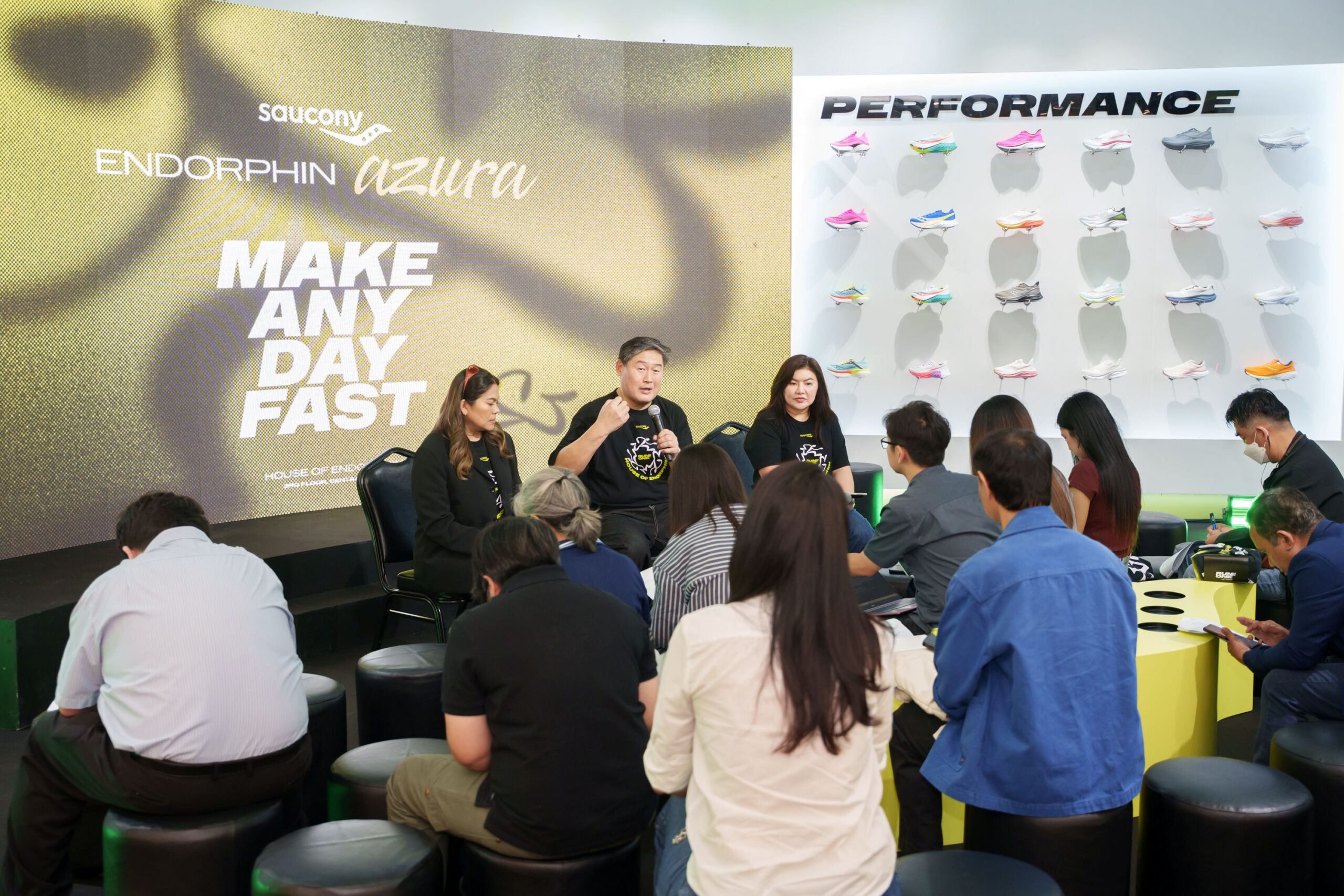 โดยในปีนี้ Saucony พร้อมเขย่าตลาดด้วยการเปิดตัว Endorphin Azura ผลิตภัณฑ์เรือธงในกลุ่ม Fast & Light ที่ถูกออกแบบมาเพื่อทลายกำแพงระหว่าง “รองเท้าแข่ง” และ “รองเท้าซ้อม” โดยการนำนวัตกรรมระดับท็อปอย่าง “ซูเปอร์โฟม” มาปรับใช้กับการวิ่งในชีวิตประจำวันอย่างลงตัว ด้วยจุดเด่นของพื้นกลาง PWRRUN PB แบบเต็มแผ่น ซึ่งเป็นเทคโนโลยีระดับเดียวกับรองเท้าทำความเร็วในสนามแข่ง มอบสัมผัสที่นุ่มเด้งพร้อมการส่งคืนพลังอย่างมีประสิทธิภาพแต่ยังคงความเสถียรที่ควบคุมได้ง่าย ส่งผลให้ Endorphin Azura กลายเป็นตัวเลือกที่ทรงพลังสำหรับกลุ่ม Everyday Active Consumers และ Urban Lifestyle Runners ที่มองหาไอเทมที่ตอบโจทย์ทั้งในแง่ของเบาสบายสูงสุดและดีไซน์ที่ทันสมัย สะท้อนภาพลักษณ์ความโฉบเฉี่ยวที่พร้อมยกระดับศักยภาพการวิ่งในทุก ๆ วัน