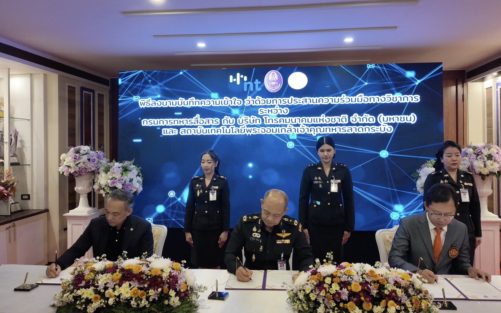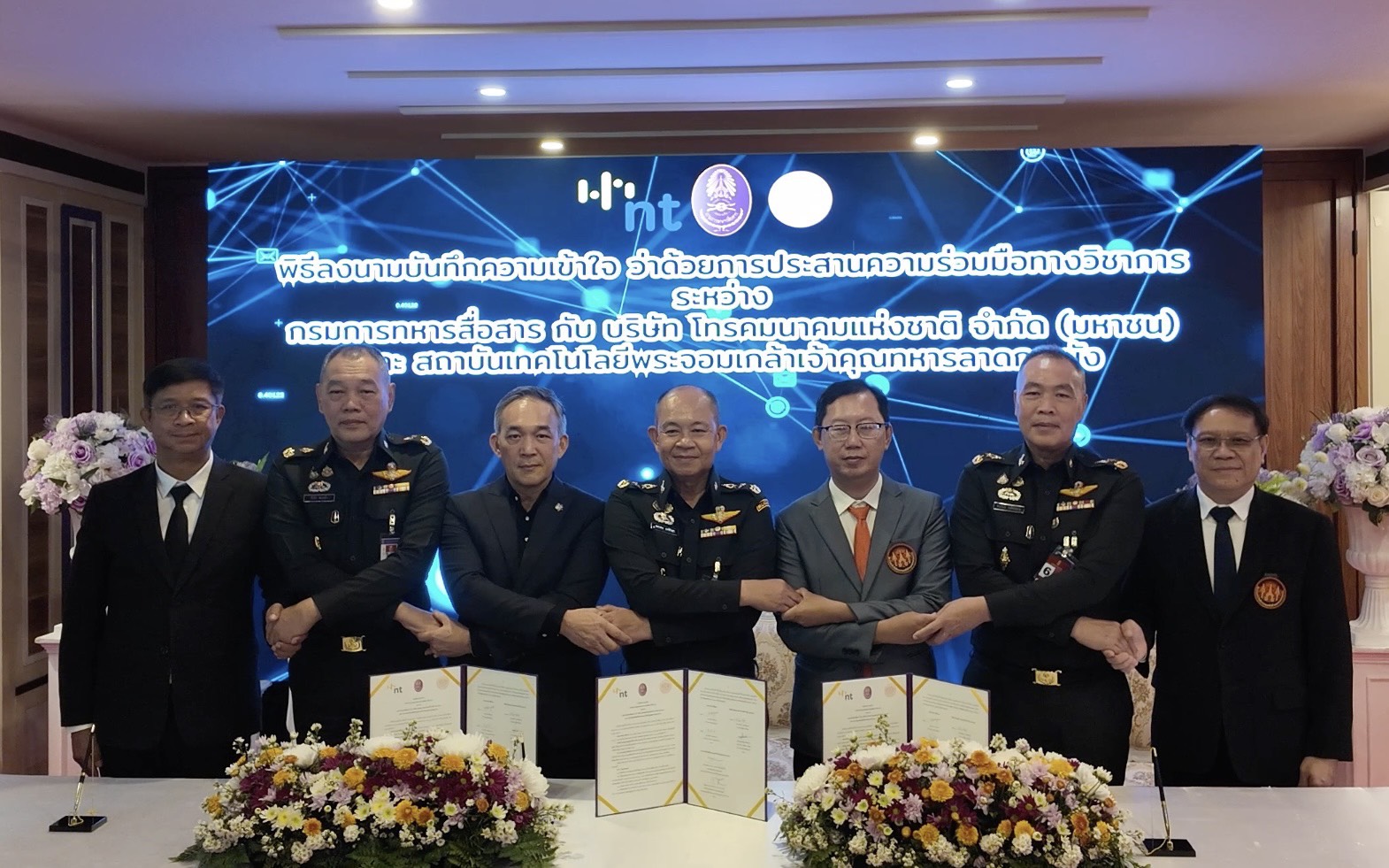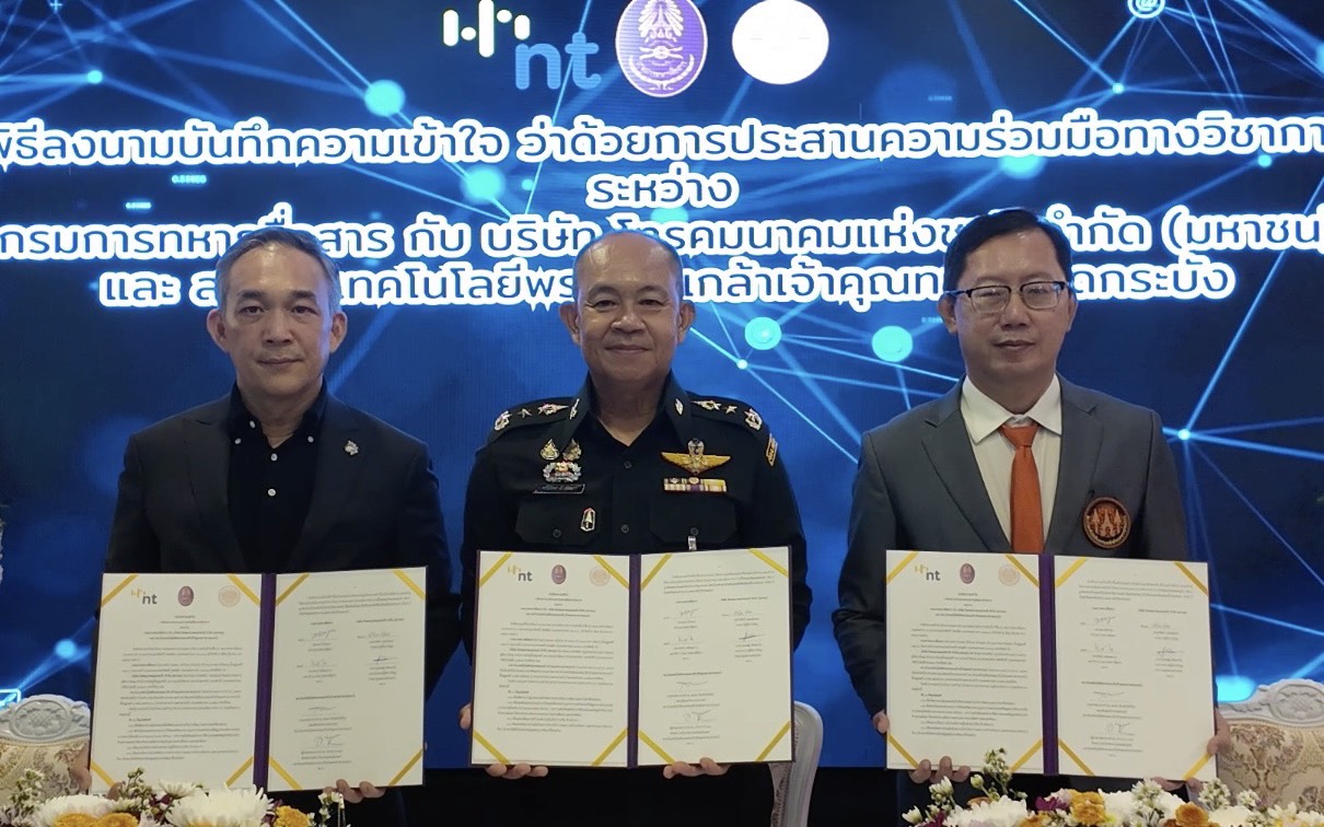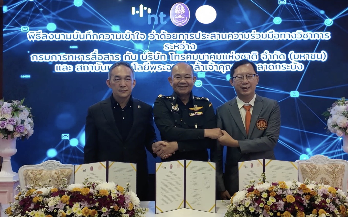 บริษัท โทรคมนาคมแห่งชาติ จำกัด (มหาชน) หรือ NT ร่วมกับ กรมการทหารสื่อสาร และสถาบันเทคโนโลยีพระจอมเกล้าเจ้าคุณทหารลาดกระบัง (KMITL) ลงนามบันทึกข้อตกลงความร่วมมือทางวิชาการ เพื่อเพิ่มขีดความสามารถด้านการวิจัยและพัฒนาระบบวิเคราะห์ข้อมูลและสั่งการจากอากาศยานไร้คนขับ (UAV) และ CCTV เสริมศักยภาพระบบเฝ้าระวังชายแดน โดยมี พลโท พรเทพ ยังรักษา เจ้ากรมการทหารสื่อสาร ในฐานะหน่วยงานระบบสื่อสารเพื่อความมั่นคงของประเทศ พันเอก สรรพชัยย์ หุวะนันทน์ กรรมการผู้จัดการใหญ่ บริษัท โทรคมนาคมแห่งชาติ จำกัด (มหาชน) หรือ NT ผู้นำด้านโครงสร้างพื้นฐานดิจิทัลของประเทศ และ รองศาสตราจารย์ ดร.สมยศ เกียรติวนิชวิไล คณบดีคณะวิศวกรรมศาสตร์ สถาบันเทคโนโลยีพระจอมเกล้าเจ้าคุณทหารลาดกระบัง