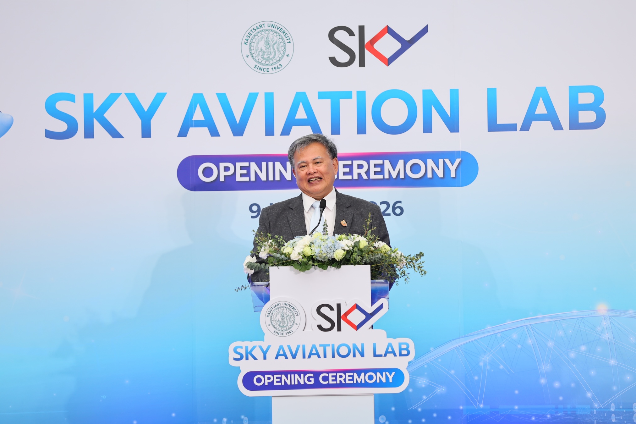 ดร.ดำรงค์ ศรีพระราม รักษาการแทนอธิการบดี มหาวิทยาลัยเกษตรศาสตร์ กล่าวว่า ทาง ม.เกษตรศาสตร์ มีความยินดีเป็นอย่างยิ่งที่ SKY ICT เล็งเห็นความสำคัญของการพัฒนาบุคลากร และเข้ามาสนับสนุนการสร้าง SKY Aviation Lab ซึ่งถือเป็นการเติมเต็มระบบนิเวศการเรียนรู้ของนิสิตทั้งระดับปริญญาตรีและบัณฑิตศึกษาให้สมบูรณ์ยิ่งขึ้น โดยนำเทคโนโลยีที่ใช้จริงในสนามบินมาให้นิสิตได้ฝึกปฏิบัติในสถานการณ์จำลอง ซึ่งจะช่วยยกระดับการเรียนการสอนให้พร้อมสร้างบุคลากรที่มีทักษะสูง (High-Skilled Talent) เพื่อเป็นกำลังสำคัญในการขับเคลื่อนประเทศไทยสู่การเป็นศูนย์กลางการบินของภูมิภาค