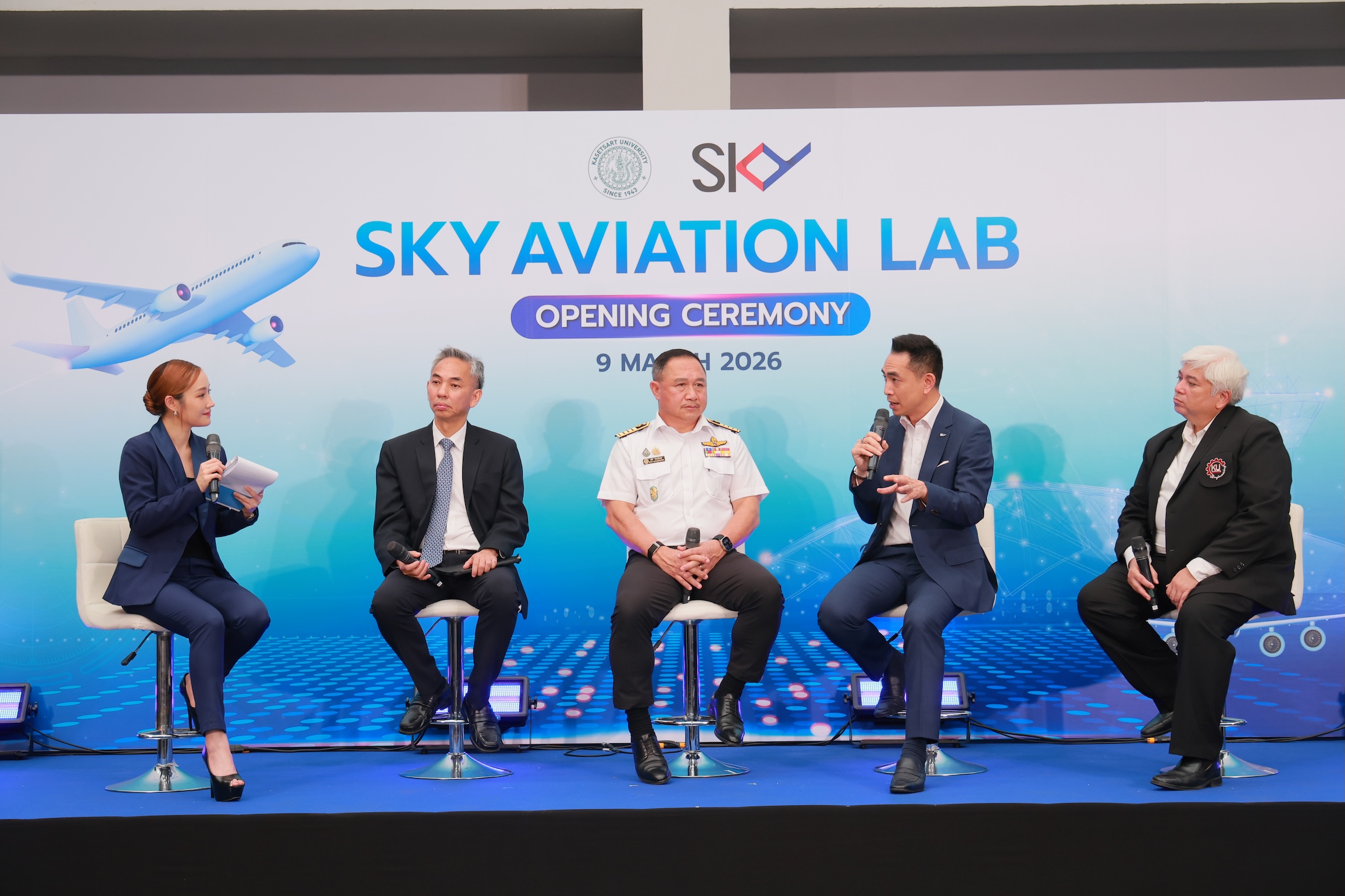 ดร.นวทัศน์ ก้องสมุทร หัวหน้าภาควิชาวิศวกรรมการบินและอวกาศ คณะวิศวกรรมศาสตร์ มหาวิทยาลัยเกษตรศาสตร์ กล่าวว่า การมีห้องปฏิบัติการ SKY Aviation Lab ที่จำลองระบบปฏิบัติงานจริงในสนามบิน เป็นเครื่องมือสำคัญที่ทำให้นิสิตได้เห็นภาพรวมและเข้าใจถึงความเชื่อมโยงของระบบนิเวศการบินอย่างเป็นระบบ ตั้งแต่กระบวนการจัดการผู้โดยสารในส่วนหน้า (Front-end) ด้วยเทคโนโลยีที่ทันสมัย ไปจนถึงการบริหารจัดการข้อมูลหลังบ้าน (Back-end) ผ่านระบบ APPS, AODB และ BRS ซึ่งทักษะการตัดสินใจบนพื้นฐานของ Big Data ถือเป็นหัวใจสำคัญของอุตสาหกรรมการบินในปัจจุบัน ที่จะช่วยพัฒนาและยกระดับสนามบินของไทยให้มีประสิทธิภาพตามมาตรฐานสากล ทั้งยังส่งเสริมให้นิสิตมีกระบวนการคิดวิเคราะห์เชิงกลยุทธ์ และพร้อมก้าวเข้าสู่เส้นทางอาชีพในอุตสาหกรรมการบินได้ทันทีที่จบการศึกษา