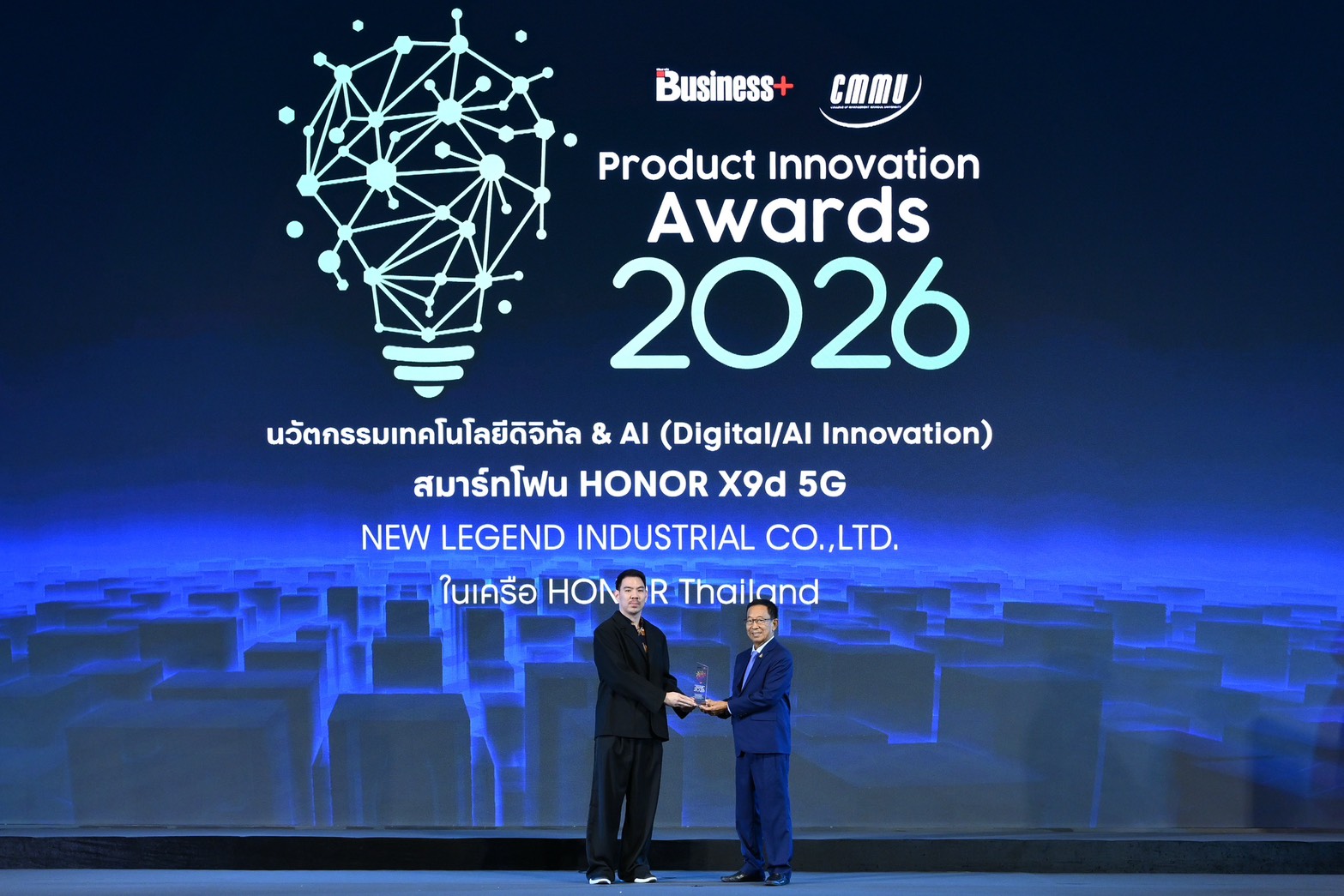 โดยมี นายเมธาพัฒน์ เดชะเศรษฐ์ศิริ ผู้จัดการฝ่ายการตลาด บริษัท นิว เลจเจินด์ อินดัสเทรียล จำกัด ผู้แทนและจัดจำหน่าย HONOR ประเทศไทยอย่างเป็นทางการ เป็นตัวแทนรับมอบรางวัล ณ โรงแรมอินเตอร์คอนติเนนตัล กรุงเทพฯ ราชประสงค์ ทั้งนี้ รางวัลดังกล่าวจัดขึ้นโดยนิตยสาร BUSINESS+ ร่วมกับวิทยาลัยการจัดการ มหาวิทยาลัยมหิดล เพื่อเชิดชูสุดยอดสินค้าและบริการที่มีนวัตกรรมโดดเด่นและครองใจผู้บริโภคมากที่สุดประจำปี 2569