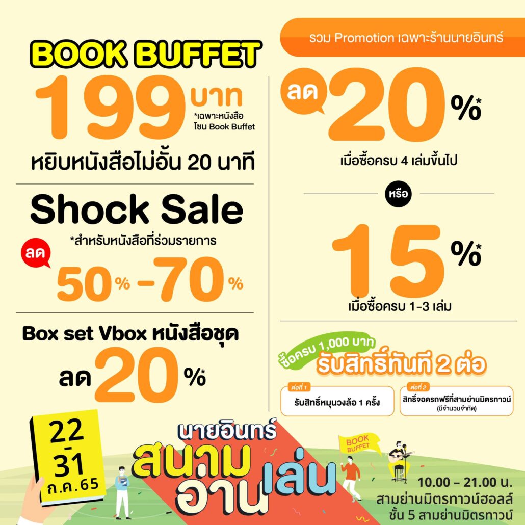 บริษัท อมรินทร์ บุ๊ค เซ็นเตอร์ จำกัด ส่งมอบความสุขให้กับสาวกคนรักการอ่าน กับงาน “นายอินทร์สนามอ่านเล่น ตอน สนามกระชับมิตร” ระหว่างวันที่ 22 – 31 กรกฎาคมนี้ ที่สามย่านมิตรทาวน์ พบกับหนังสือใหม่ล่าสุดจากสำนักพิมพ์ชั้นนำและโปรโมชันสุดปัง ลดสูงสุด 70% เมื่อซื้อหนังสือ 5 เล่มขึ้นไป หรือ ช้อปครบ 4 เล่มขึ้นไป ลดสูงสุดถึง 20% และช้อปครบ 1-3 เล่ม ลดสูงสุด 15% พิเศษด้วย Book Buffet หยิบหนังสือไม่อั้นเพียงถุงละ 199 บาท และคุ้มค่าอย่างต่อเนื่อง เมื่อซื้อหนังสือครบ 1,000 บาท รับสิทธิ์ลุ้นรับของพรีเมียม และที่จอดรถฟรี! ไม่เพียงเท่านี้ นายอินทร์ยังจัดกิจกรรมให้นักอ่านได้มาสร้างความสุข เร่งเครื่องความฟิน อัดฉีดความมันส์ไปพร้อมกันกับกิจกรรมในสนามความสุข