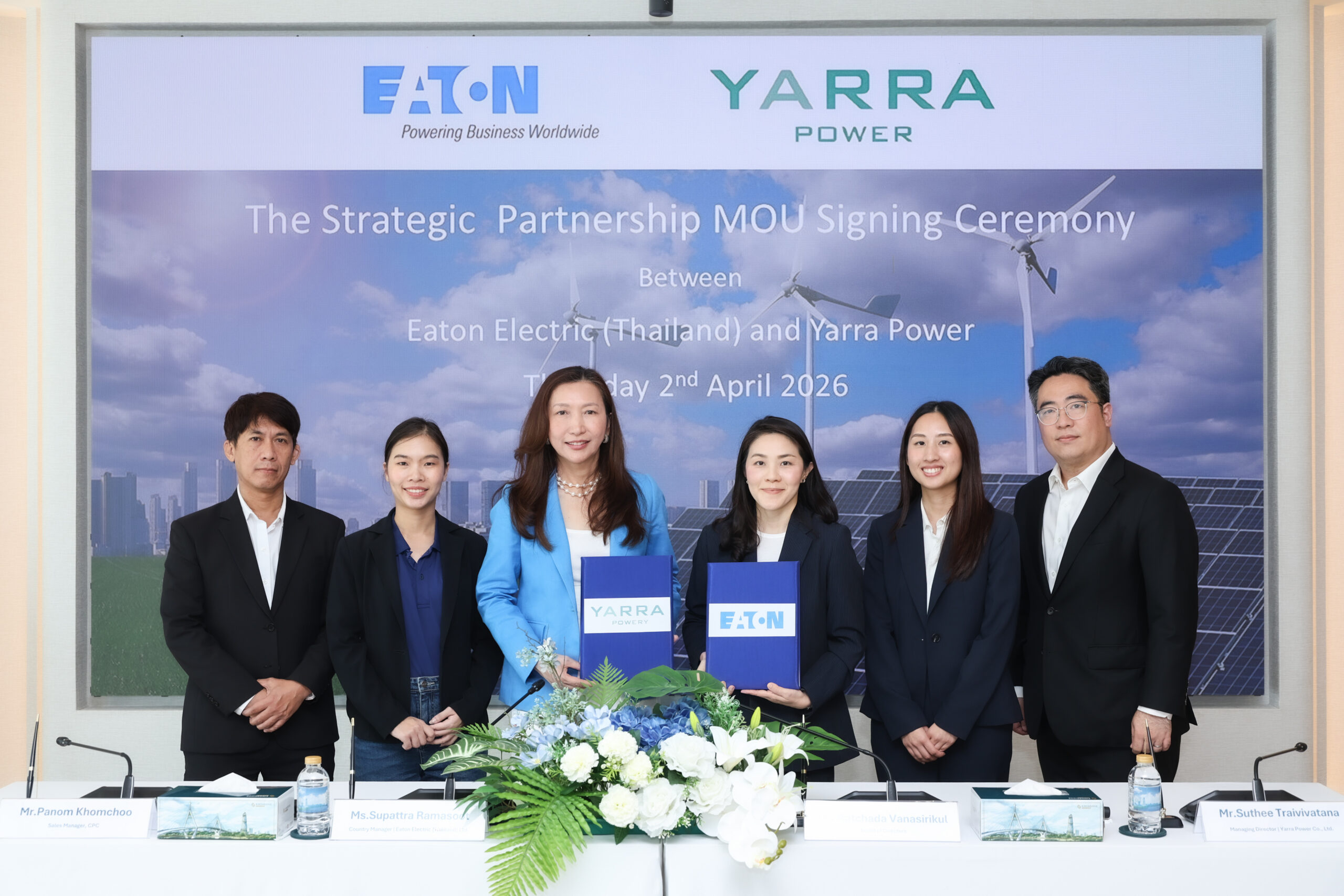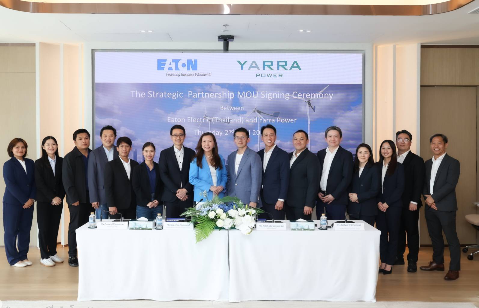บริษัท Eaton Electric (Thailand) Ltd นำโดย นางสาวสุภัทรา รามสูต ผู้จัดการประจำประเทศไทย ได้ลงนามในบันทึกข้อตกลงความร่วมมือ (Memorandum of Understanding: MOU) กับบริษัท Yarra Power Co., Ltd. โดยมี นายศิริพงษ์ ศิริสัจจวัฒน์ ประธานเจ้าหน้าที่บริหาร เป็นผู้ลงนาม เพื่อร่วมกันขยายโอกาสทางการตลาดและเสริมสร้างศักยภาพทางธุรกิจด้านโซลูชันระบบพลังงานแสงอาทิตย์ สำหรับกลุ่มพาณิชย์และอุตสาหกรรม (Commercial & Industrial) และครัวเรือน (Residential) ในประเทศไทย ความร่วมมือในครั้งนี้มีเป้าหมายเพื่อพัฒนาธุรกิจในด้านที่สอดคล้องกับทิศทางพลังงานสะอาดและการใช้พลังงานอย่างมีประสิทธิภาพ ครอบคลุมการทำงานร่วมกันด้านเทคโนโลยี การพัฒนาและนำเสนอผลิตภัณฑ์ รวมถึงโซลูชันด้านระบบไฟฟ้าและการป้องกันระบบ เพื่อเพิ่มความน่าเชื่อถือและประสิทธิภาพของระบบพลังงานแสงอาทิตย์ สำหรับกลุ่มที่อยู่อาศัย อาคารพาณิชย์ และภาคอุตสาหกรรม