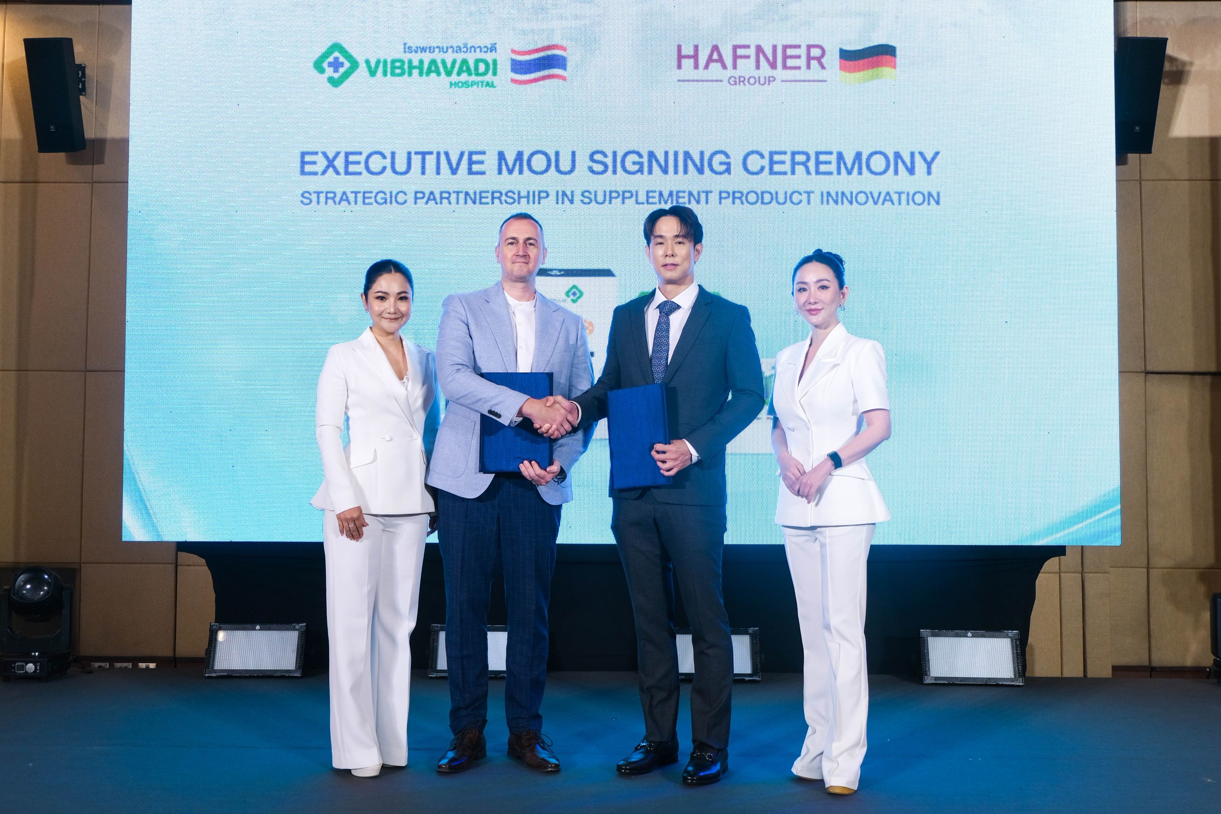 ฮาฟเนอร์ กรุ๊ป (Hafner Group) ผู้เชี่ยวชาญด้านการผลิตผลิตภัณฑ์เสริมอาหารจากประเทศเยอรมนี พร้อมประกาศความร่วมมือครั้งสำคัญผ่านการลงนามบันทึกข้อตกลง (MOU) กับ โรงพยาบาลวิภาวดี เพื่อร่วมกันพัฒนาผลิตภัณฑ์เสริมอาหารในมิติของ “Prevention” อย่างเป็นรูปธรรม มุ่งยกระดับคุณภาพชีวิตและการดูแลสุขภาพเชิงป้องกันของคนไทยในระยะยาว