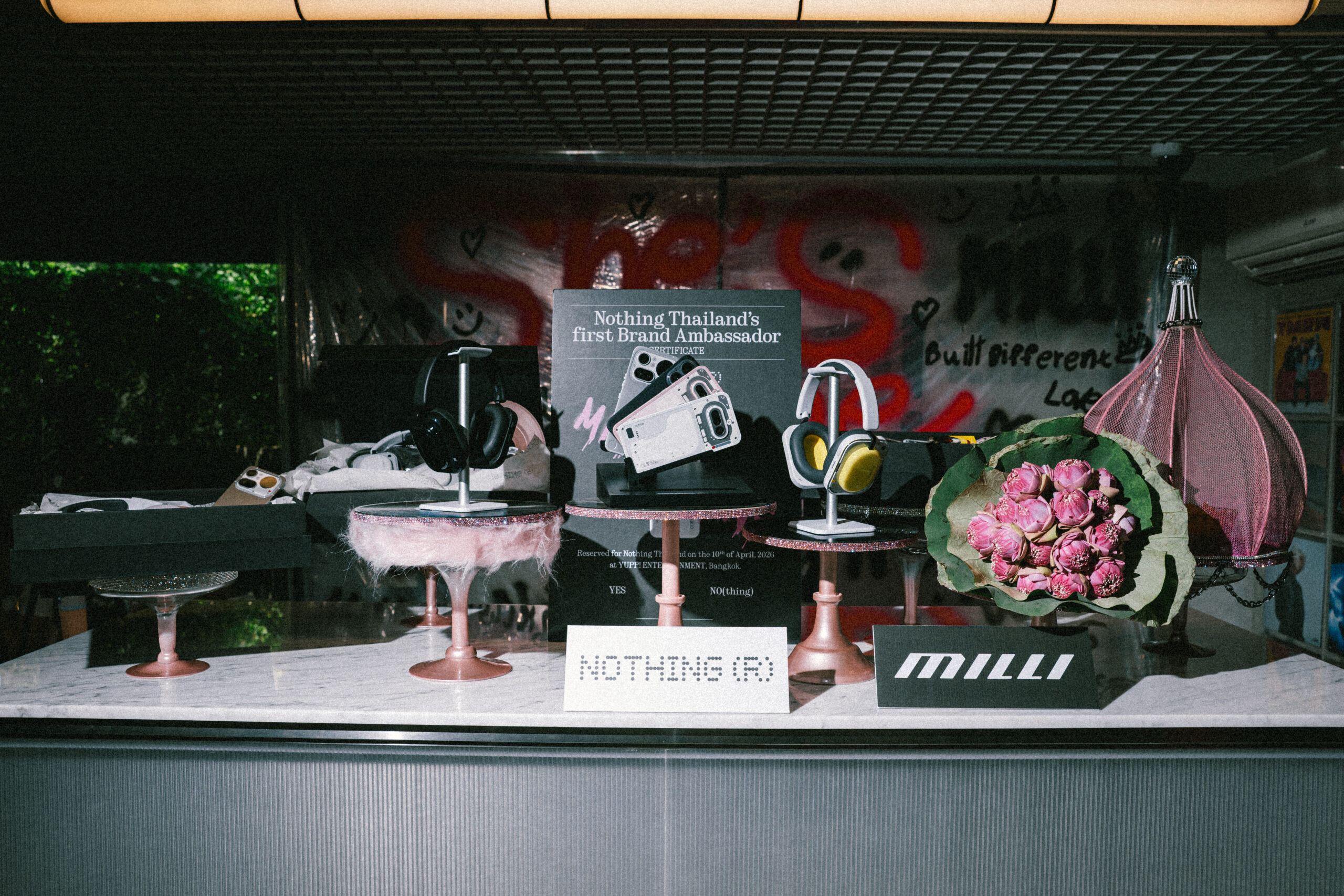 ทุกอย่างเริ่มต้นจากงานเปิดตัว Phone (4a) Series และ Headphone (a) เมื่อวันที่ 24 มีนาคม 2569 ซึ่งเป็นจุดที่ MILLI และ Nothing ได้เจอกันครั้งแรก และออร่าของ MILLI ดันสะดุดตาแบรนด์เข้าอย่างจัง โดยในงานพิธีสู่ขอ Brand Ambassador วันนี้ นายพลภัทร สายบัวทอง ผู้อำนวยการประจำ Nothing แห่งประเทศไทย เผยเหตุผลถึงที่มาที่ไปของงานนี้ ว่า Nothing Thailand สนใจ MILLI มาตั้งแต่ปีที่ผ่านมา และในปีนี้เรากล้าที่จะเดินหน้าจองตัวน้องนวยมาเป็น Brand Ambassador เพราะหลังเปิดขาย Phone (4a) Series และ Headphone (a) ไปเมื่อไม่นานมานี้เราสามารถทำยอดขายได้ทะลุเป้าจนสามารถเก็บเงินมาสู่ขอ MILLI ได้สำเร็จ และแน่นอนว่าไม่ใช่แค่ความรักอย่างเดียว แต่ MILLI คือคนที่ไม่เคยหยุดเป็นตัวเอง กล้าพูด กล้าแสดงออก และกล้าทำในสิ่งที่คนอื่นยังลังเล ซึ่งนั่นคือสิ่งเดียวกันกับที่ Nothing ยืนหยัดมาตลอดตั้งแต่วันแรก และในปีนี้ Nothing Thailand พร้อมแล้วที่จะเดินหน้าจองตัวน้องนวย การจับมือครั้งนี้จึงถือเป็นการรวมกันของสองพลังที่พูดภาษาเดียวกัน นั้นคือภาษาของคนที่กล้าจะแตกต่าง แน่นอนว่าสิ่งนี้จึงทำให้ Nothing แห่ขันหมากมาสู่ขอ “จองตัว MILLI มาเป็น Brand Ambassador คนแรกของ Nothing Thailand”