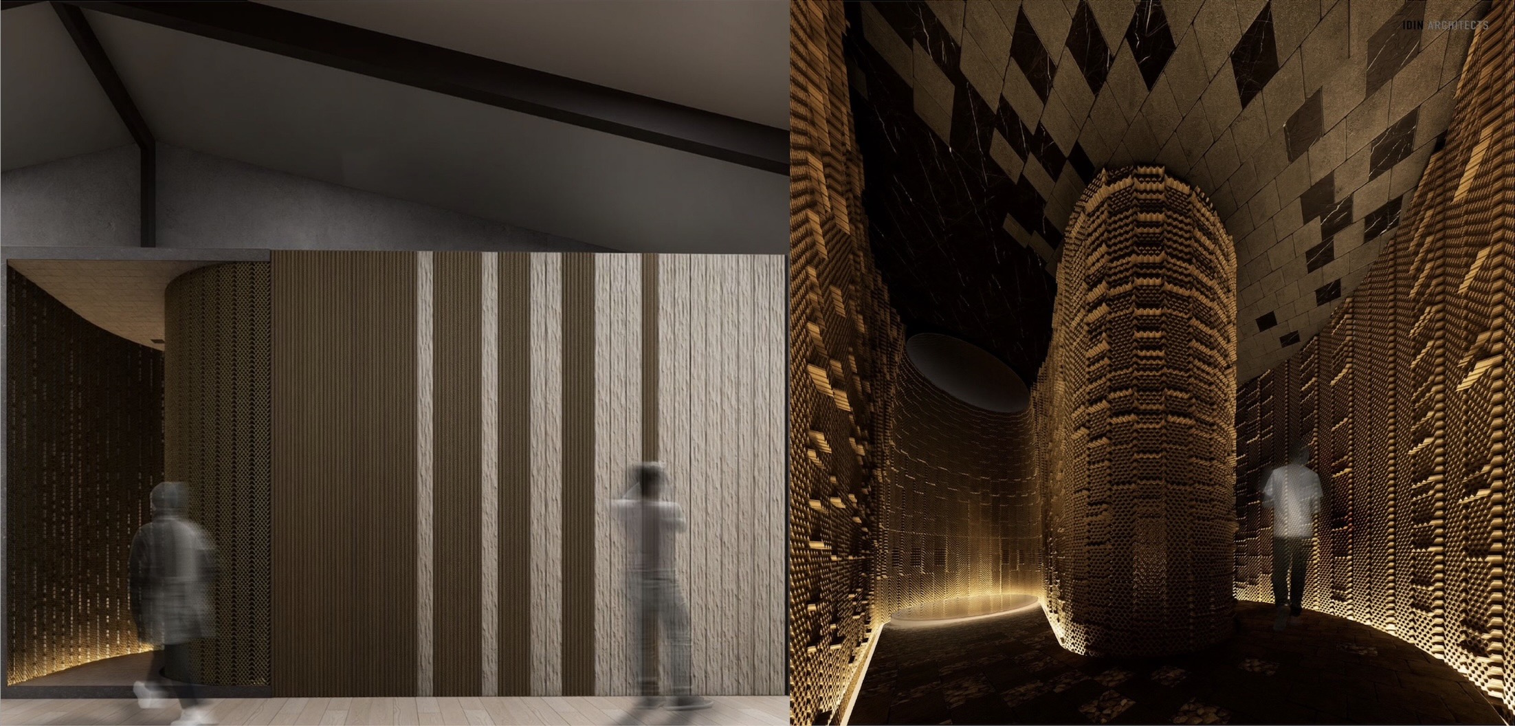 Wellness Space ผลงานจาก IDIN ARCHITECTS ที่ตั้งคำถามกับเรื่อง “Wellness” โดยใช้เครื่องมือ Mindfulness ออกแบบ Routing ด้วยวัสดุไม้ระแนงตกแต่ง LT by COTTO จากกลุ่ม Rooted ผสานกับกลุ่ม Real และ Radiant สร้างเป็นพื้นที่ที่ชวนให้ผู้คนตระหนักรู้ในทุกย่างก้าว ถูกกำหนดให้เดินแบบ 1:1 ขณะที่ระดับพื้นจะค่อยๆ เปลี่ยนเป็น สูงขึ้น แคบลง พร้อมจังหวะแสงที่ดิม และสว่างสลับกันไป เพื่อมองให้เห็นถึงโลกภายนอก ไปพร้อมกับการตระหนักรู้จากภายใน