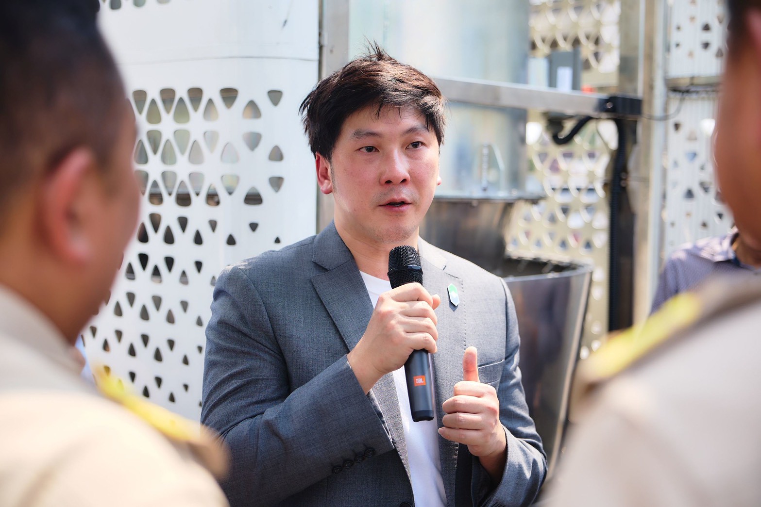 ธูปกระจ่าง นายกองค์การบริหารส่วนจังหวัดปทุมธานี พร้อมคณะจากองค์การบริหารส่วนจังหวัดปทุมธานี เข้าร่วมเยี่ยมชมกิจกรรมและรับฟังการนำเสนอ ซึ่งสะท้อนถึงความร่วมมือระหว่างภาครัฐและเอกชนในการแสวงหาแนวทางใหม่ๆ เพื่อยกระดับการบริหารจัดการสิ่งแวดล้อมในพื้นที่ได้อย่างเหมาะสม