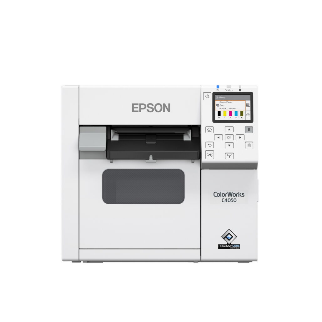 Epson Color Works C4050 เป็นเครื่องพิมพ์ฉลากที่ถูกพัฒนาขึ้นมาเพื่อทดแทนรุ่น C3510 โดยมีการปรับเปลี่ยนไปใช้เทคโนโลยีหัวพิมพ์ PrecisionCore™ TFP เพื่อเพิ่มประสิทธิภาพการพิมพ์ให้สูงขึ้น เพราะจะสามารถควบคุมการพ่นหมึกได้อย่างแม่นยำ พิมพ์ภาพที่มีความละเอียดสูงสุดได้ถึง 1200 x 1200 dpi มีฟังก์ชันการจับคู่สีเพื่อให้ได้ชิ้นงานที่ตรงตามความต้องการที่สุดแม้พิมพ์ฉลากที่มีความซับซ้อน รองรับการพิมพ์บนวัสดุได้หลากหลาย ไม่ว่าจะเป็นกระดาษธรรมดา กระดาษสังเคราะห์ กระดาษผิวด้านจนถึงผิวมัน และยังสามารถเลือกโหมดการพิมพ์ที่เหมาะสมตามประเภทของวัสดุที่ใช้ นอกจากนี้ตัวเครื่องยังมาพร้อมกับตลับหมึกสีดำด้านและสีดำเงา เพื่อให้ได้คุณภาพที่ดีที่สุดในทุกงานพิมพ์ เครื่องพิมพ์ Epson ColorWorks C4050 ใช้หมึกพิมพ์ DURABrite Ultra Pigment