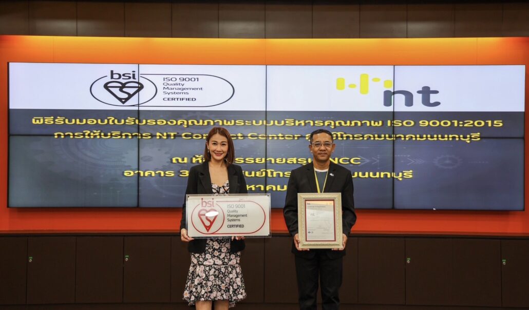 NT Contact Center ศูนย์โทรคมนาคม นนทบุรี รับใบรับรอง ISO 9001:2015 เชื่อมั่นให้บริการด้วยมาตรฐานสากล