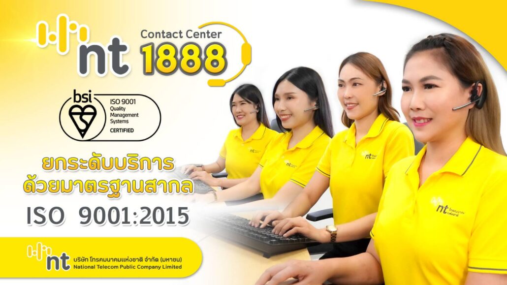 การได้รับใบรับรองระบบบริหารงานคุณภาพการให้บริการ ISO 9001:2015 สำหรับการให้บริการ Contact Center 1888 ในปี 2566 นี้ เป็นส่วนหนึ่งของความสำเร็จ ในการยกระดับการให้บริการในมิติต่าง ๆ ทั้งในด้านคุณภาพบริการและการอำนวยความสะดวกและสร้างความเชื่อมั่นให้แก่ลูกค้าของ NT อย่างต่อเนื่องด้วยมาตรฐานสากล